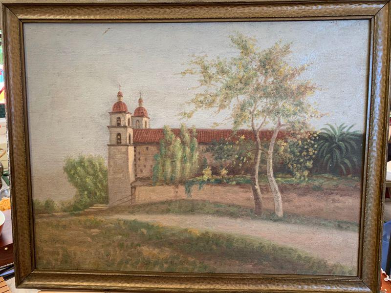 ART 1 ANTIQUE OIL ON CANVAS SANTA BARBARA MISSION