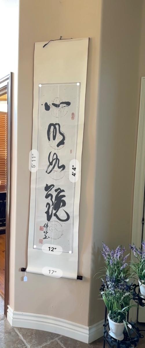 There is a large selection of art in this Online sale. You are bidding on all the items in the photo. Everything in the photo in included except any displays and items used for sizing. We do not have time to measure individual items.