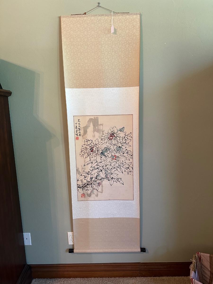 There is a large selection of art in this Online sale. You are bidding on all the items in the photo. Everything in the photo in included except any displays and items used for sizing. We do not have time to measure individual items.