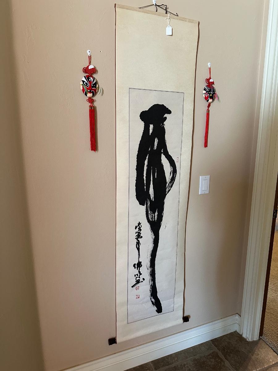 There is a large selection of art in this Online sale. You are bidding on all the items in the photo. Everything in the photo in included except any displays and items used for sizing. We do not have time to measure individual items.