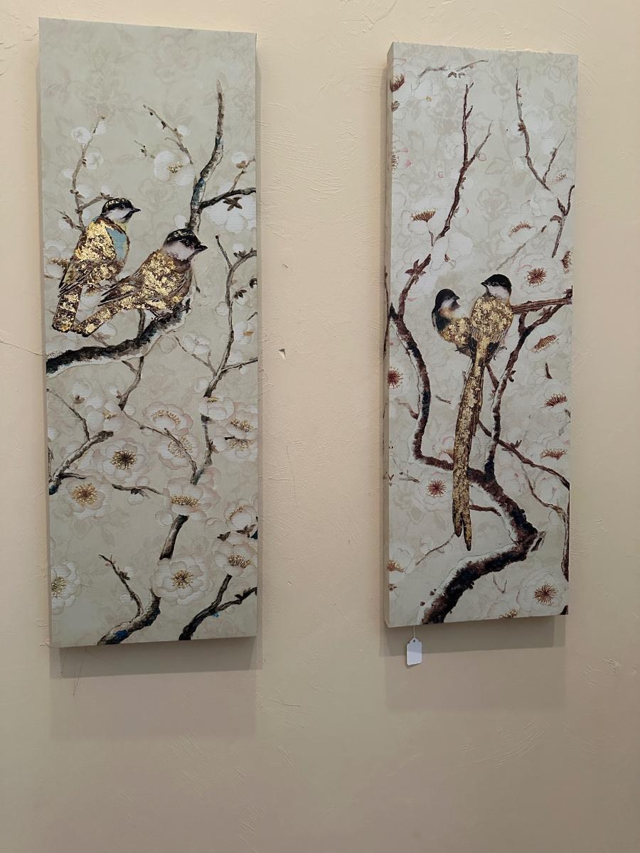 There is a large selection of art in this Online sale. You are bidding on all the items in the photo. Everything in the photo in included except any displays and items used for sizing. We do not have time to measure individual items.