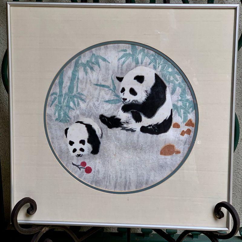 Wood block print titled Panda by Li-Yi-Tai, hand colored, 20"x20"