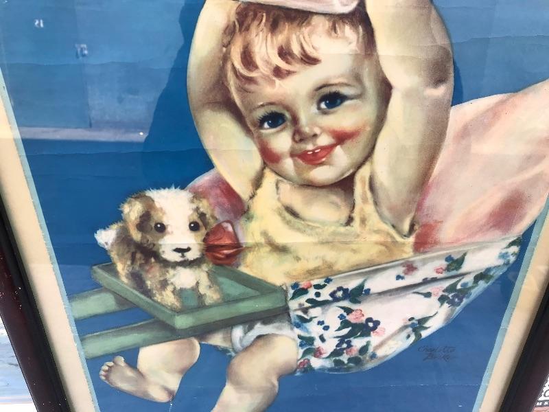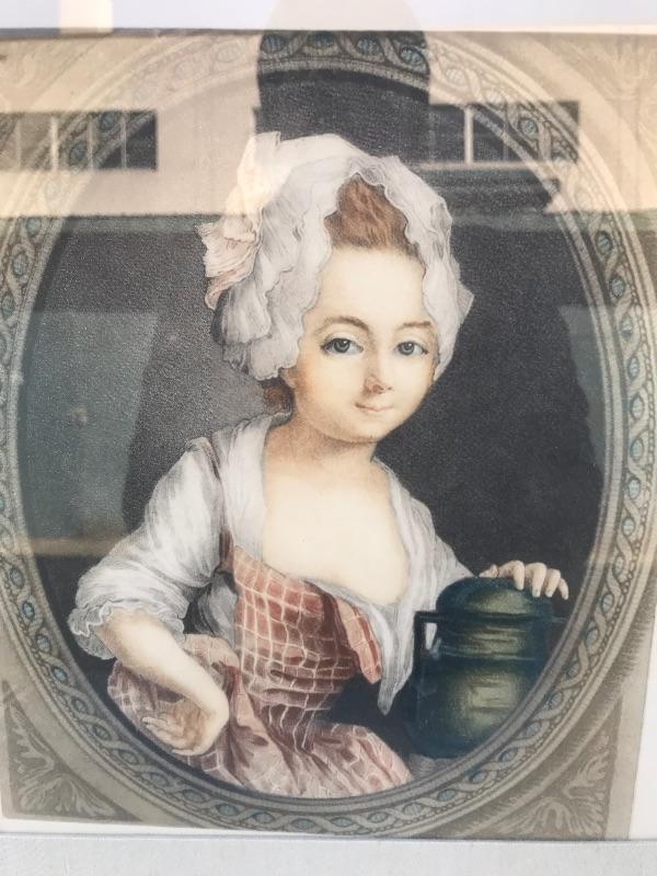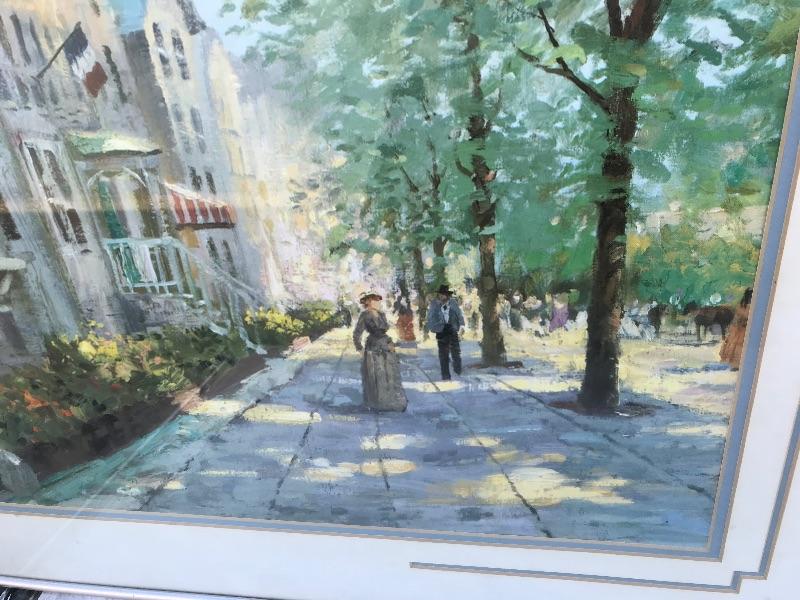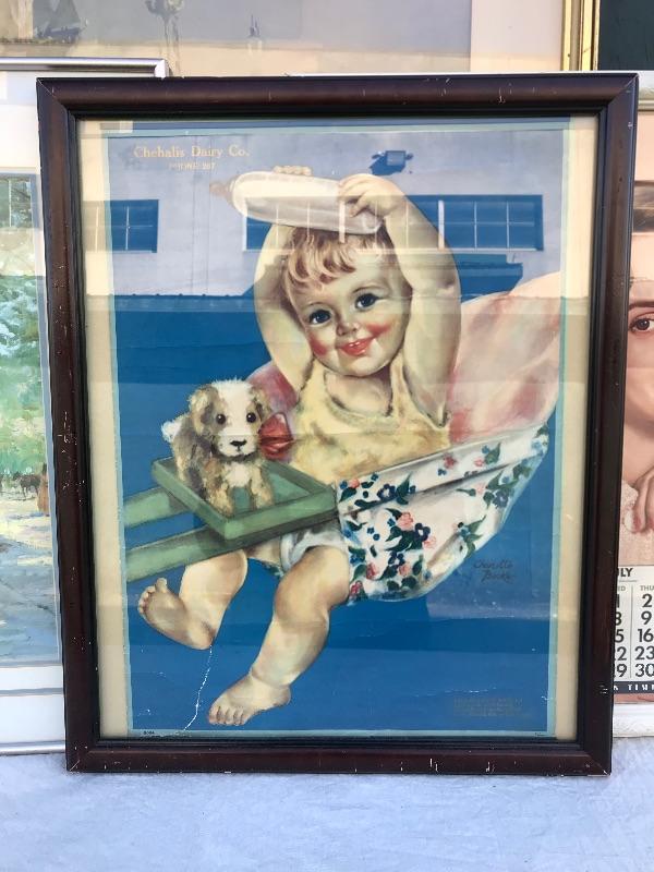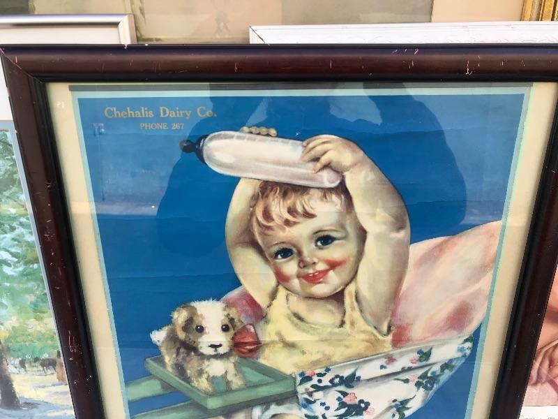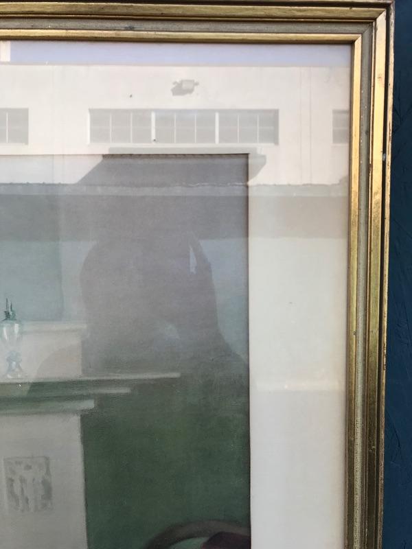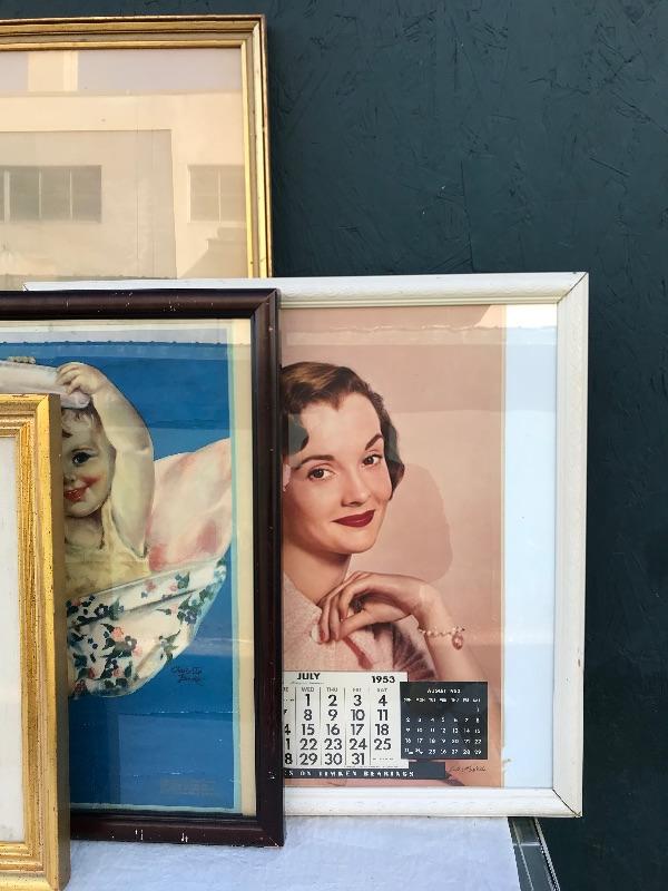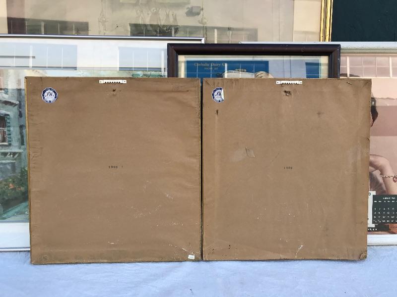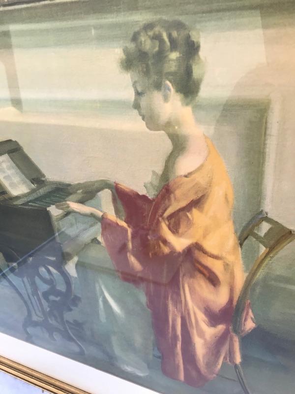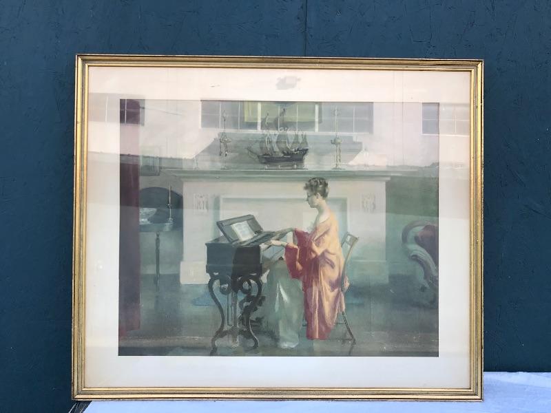 Framed pieces of art ranging from 16.75" x 18" (pair of matching portraits) to 37.75" x 32" ("At the Melodian").