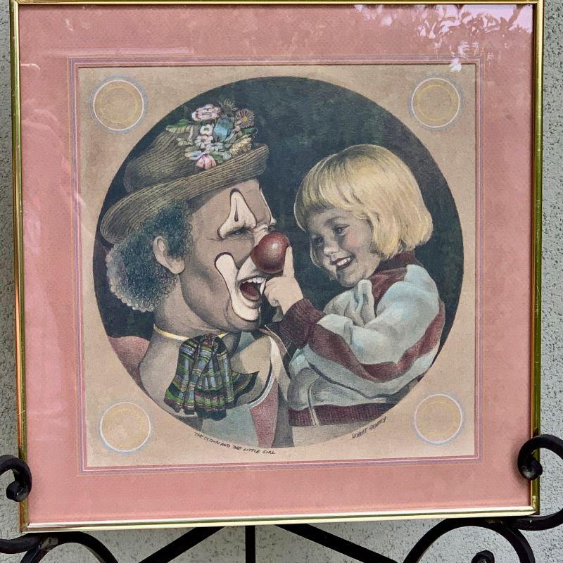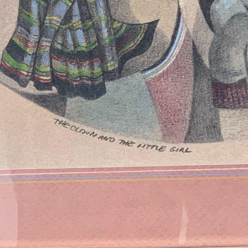 The Clown and the Little Girl, hand colored print by Robert Gentry. Titled and signed.