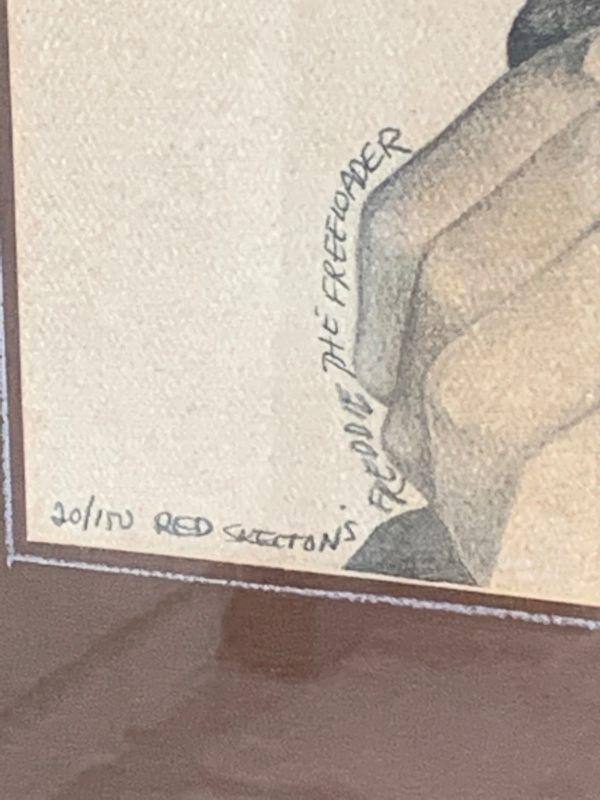 Robert Gentry, Laguna Beach artist, s/n hand colored print, 20/100. Red Skelton as Freddie the Freeloader. 20 1/4"x16 1/4"