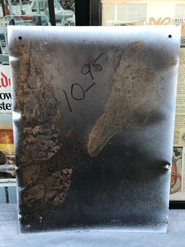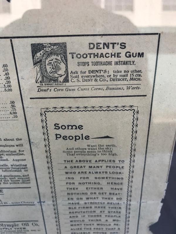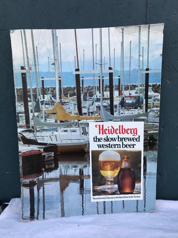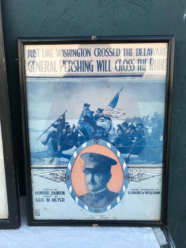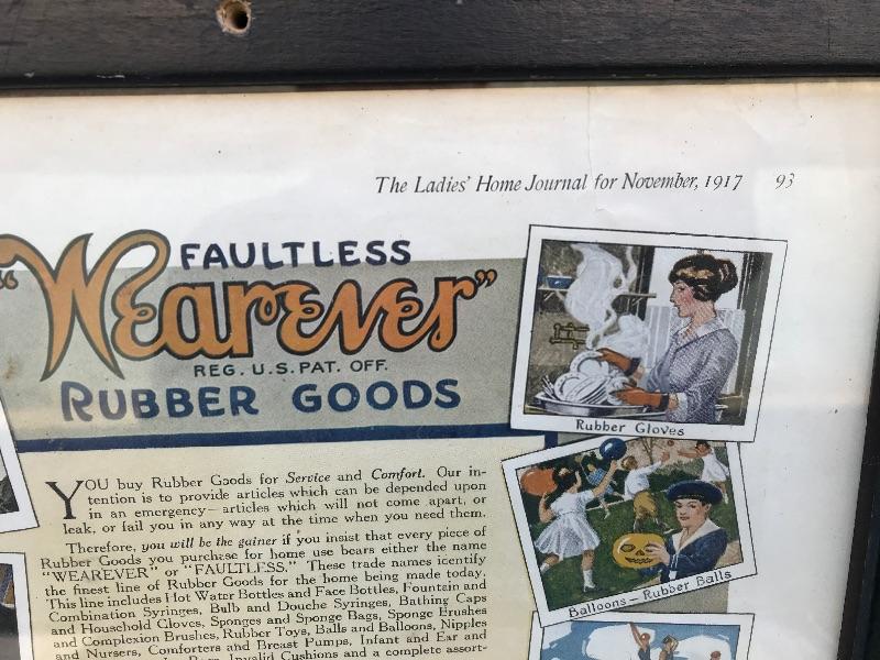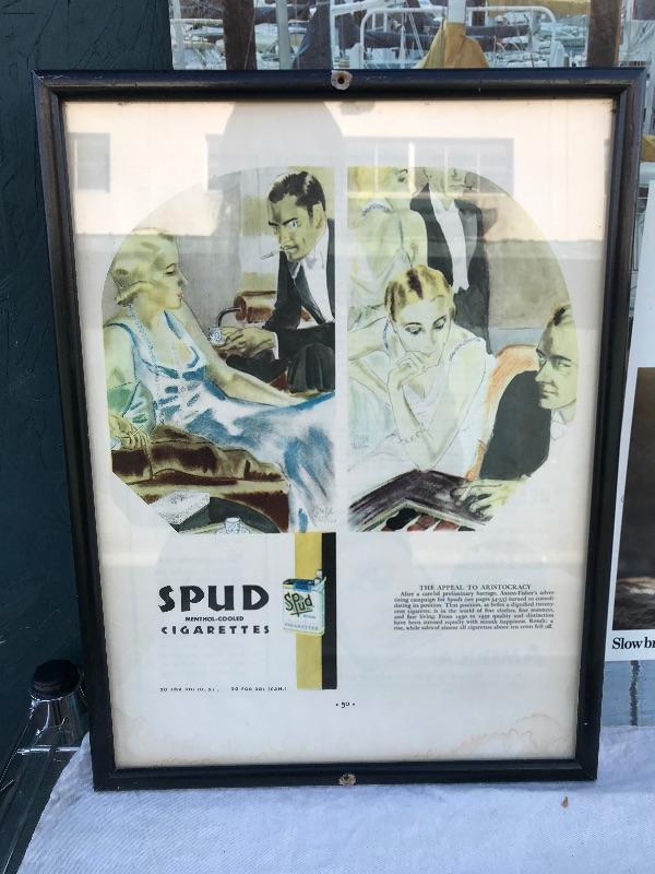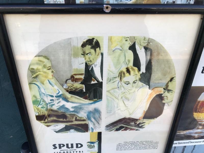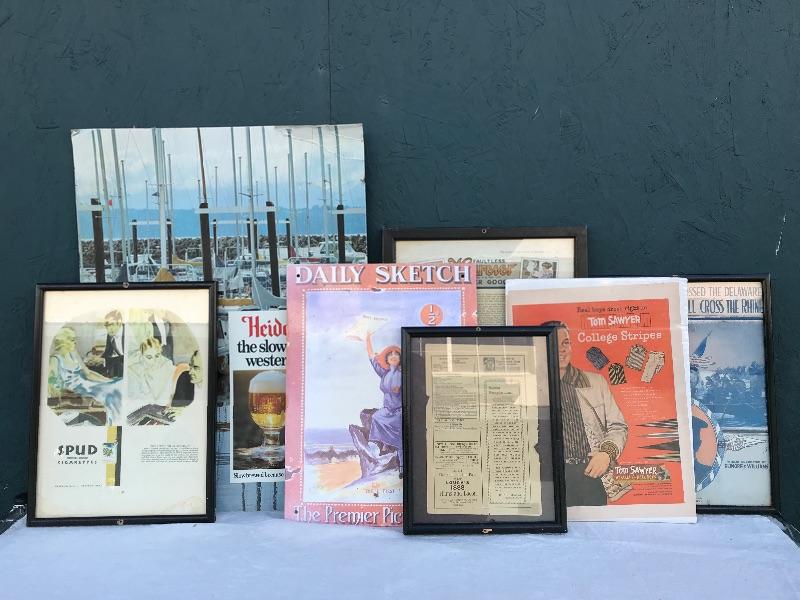 Dent's toothache Gum is 9.5" x 12". Tom Sawyer "Apparel for Real Boys" is 10.5" x 14" and is backed by cardboard wrapped in plastic. Daily Sketch is 12" x 15.75" printed on metal. SPUD Menthol Cigarettes is 11" x 14.5". Fautless "Wearever" Rubber Goods Ad is 12.75" x 17.75". General Pershing print is 11.25" x 14.75". Heidelberg beer is 18" x 24" made of cardboard.