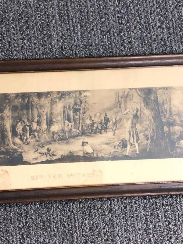 Vintage Rip Van Winkle print. Long & narrow art. Some discoloration from age.