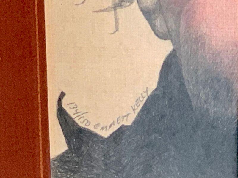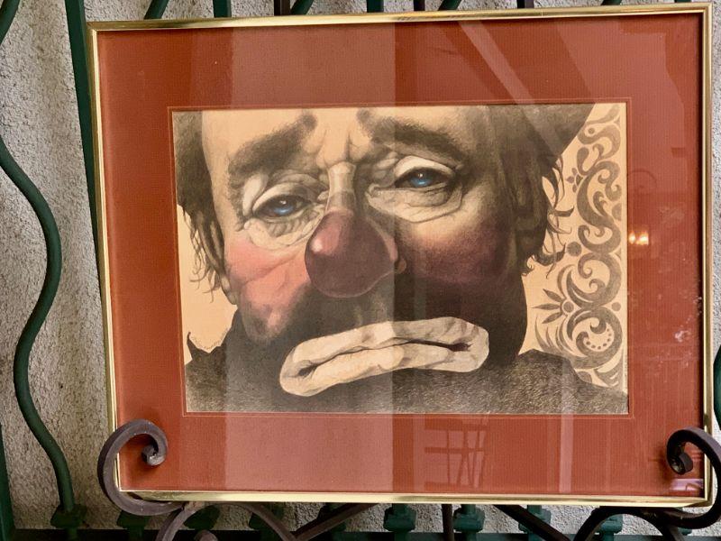 Robert Gentry, Laguna Beach artist, s/n hand colored print. Clown Emmett Kelly 134/150 10 1/4"x16 1/4"