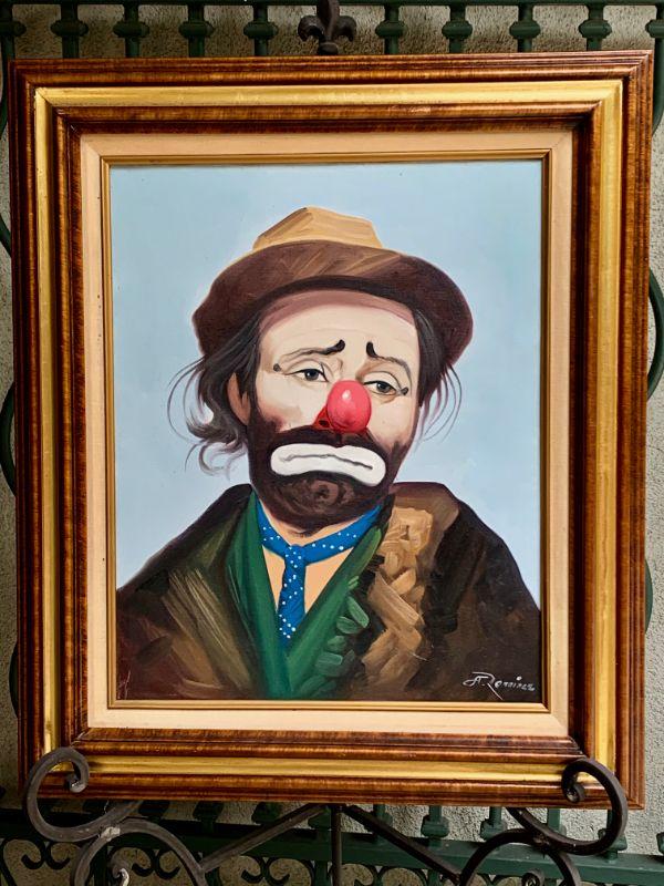 A. Ramirez, hobo clown painting on canvas, Emmett Kelly 16"x20" Frame and mat add 4"