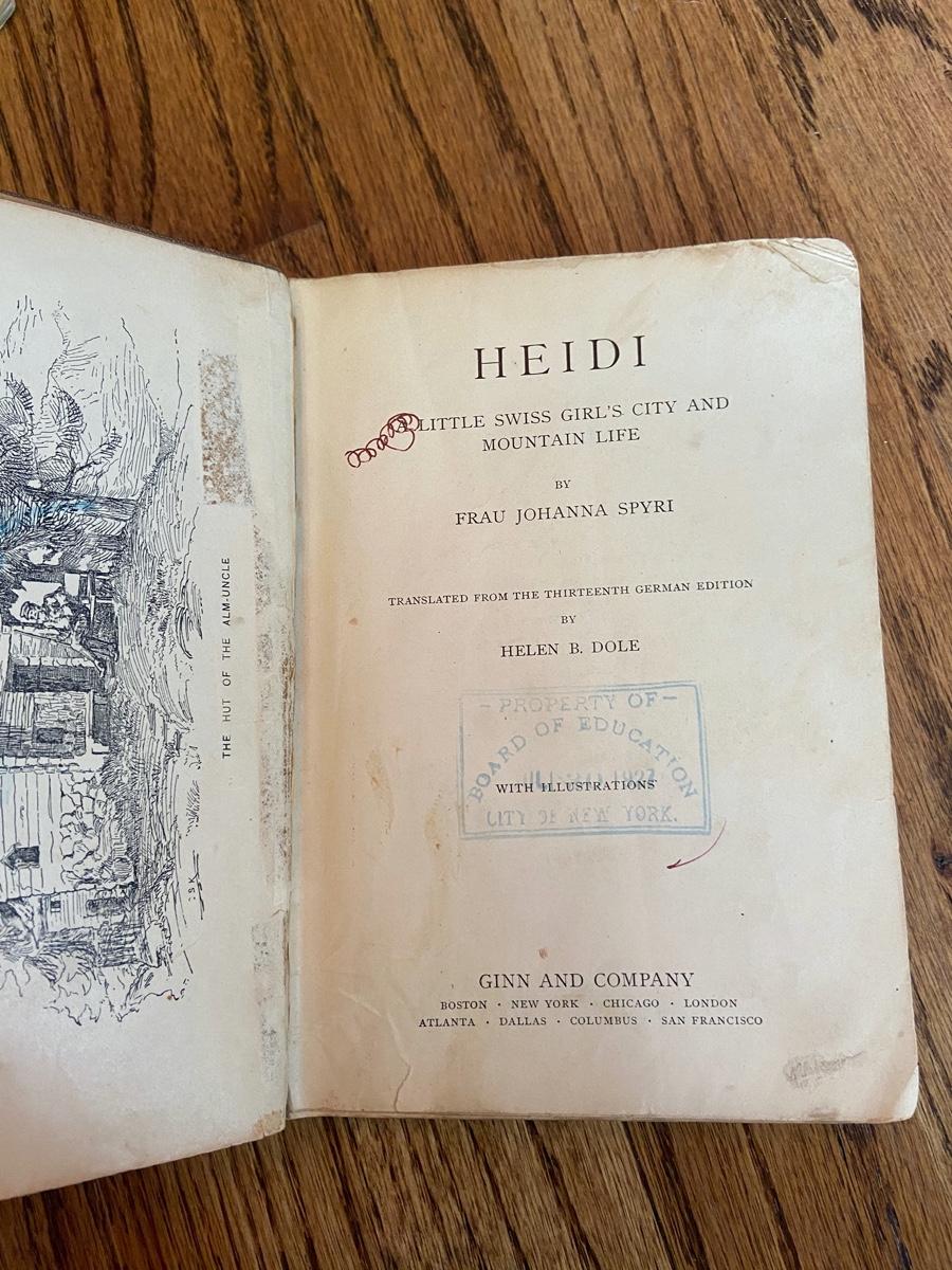 Heidi A Little Swiss Girl's City And Mountain Life by Frau Johanna Spyri, brown hardcover ,Published by Ginn and Company