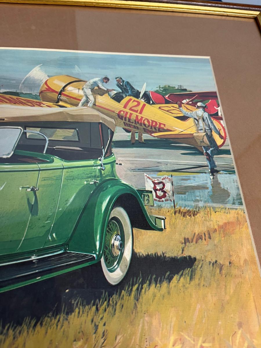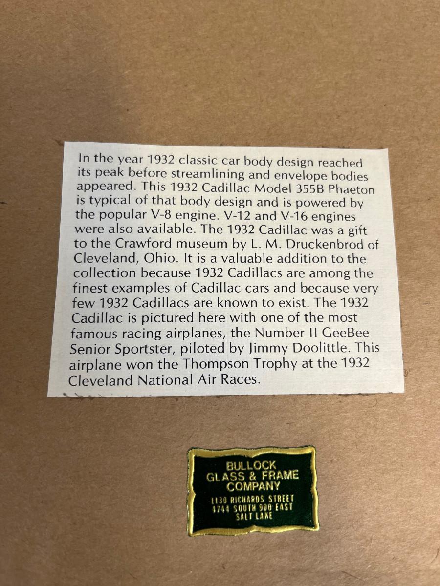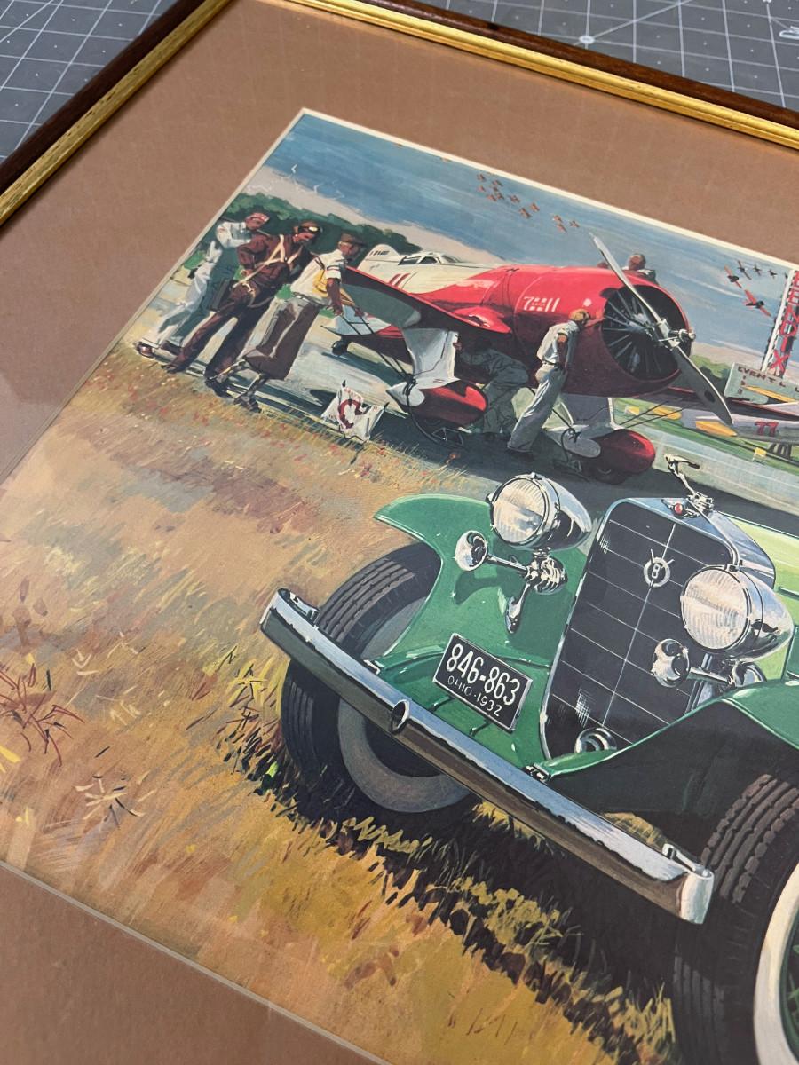 Art ~ Antique Car Print W J Sims Framed and mated 1932 Cadillac