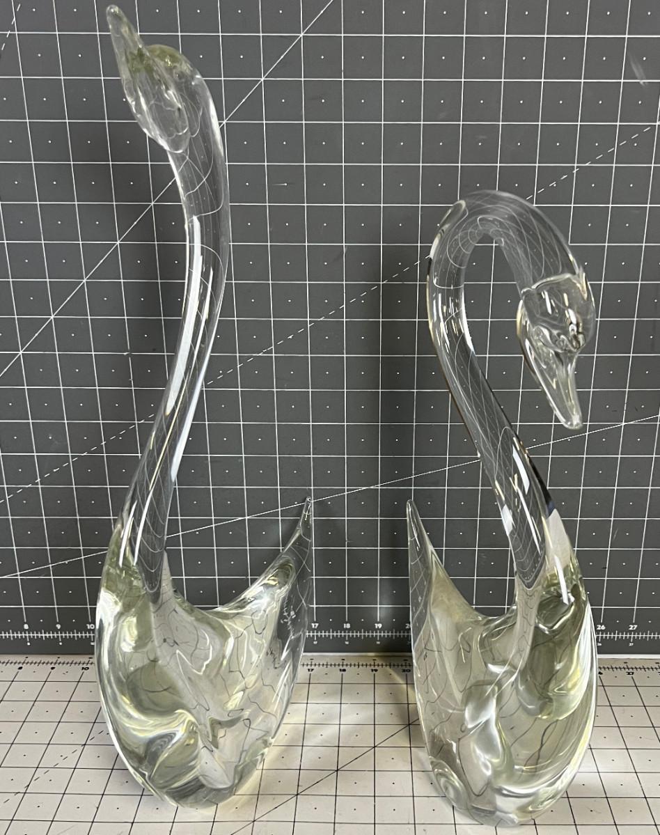ART - Clear Hand Blown pair of Swans