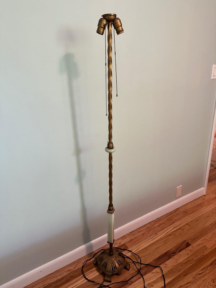 Art Deco Akro Agate Houze Uranium Slag Glass And Cast Iron Floor Lamp
