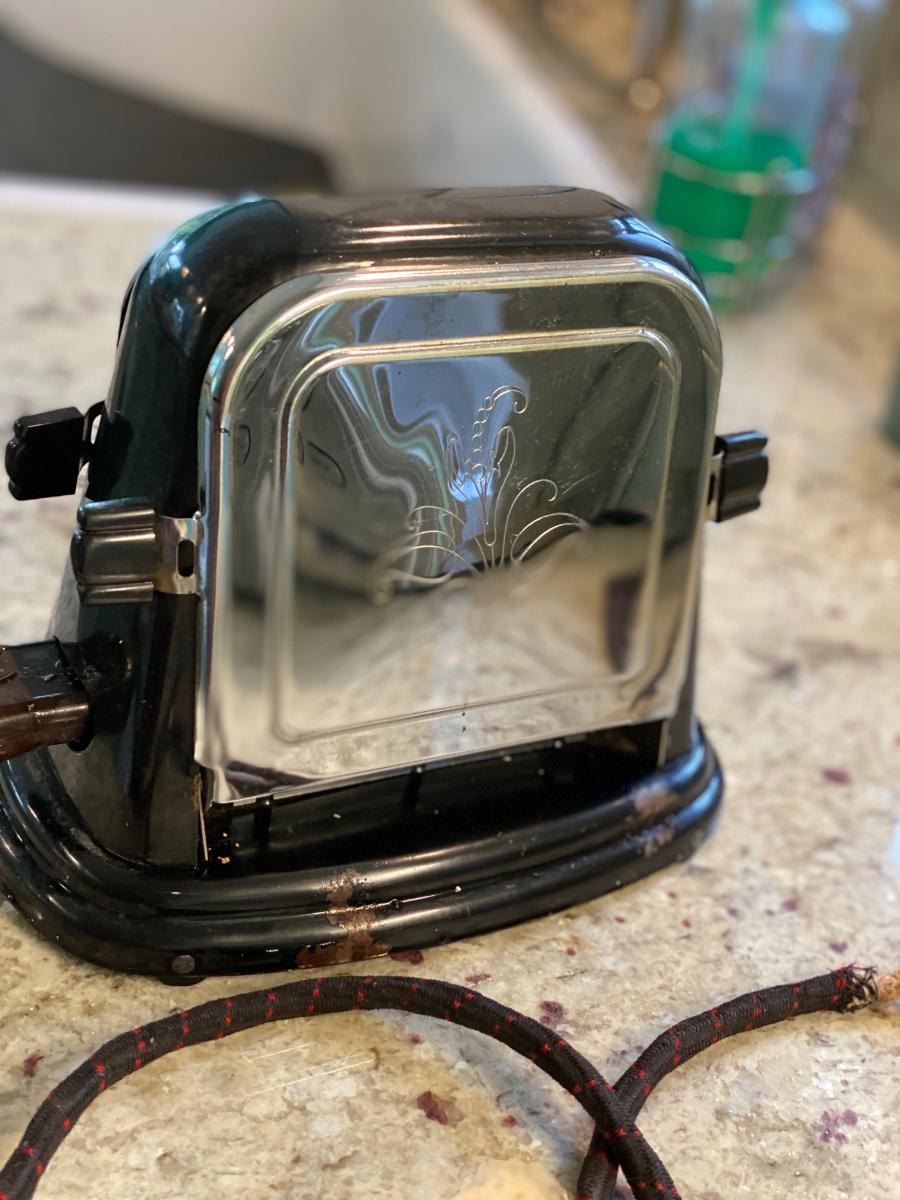 Antique 1930s Bersted Manufacturing Model 70 “ Fostoria” toaster RETRO old chrome and black ART DECO toaster. Nice deco design, nice gloss. A bit of tarnish is a couple placers on black base. Cord is present but should be swapped out. Works !
