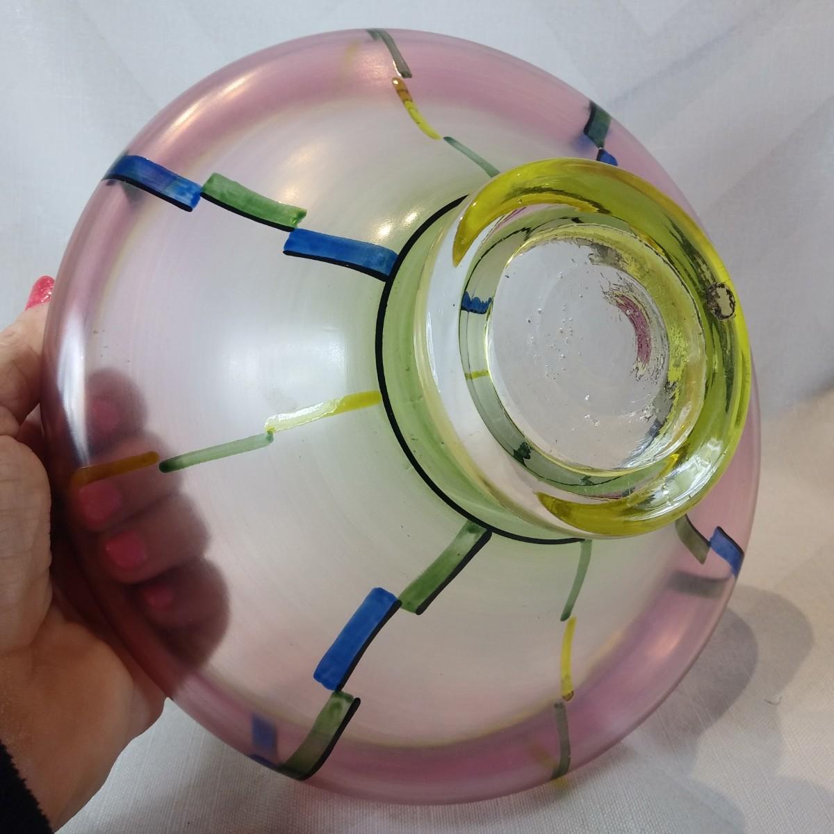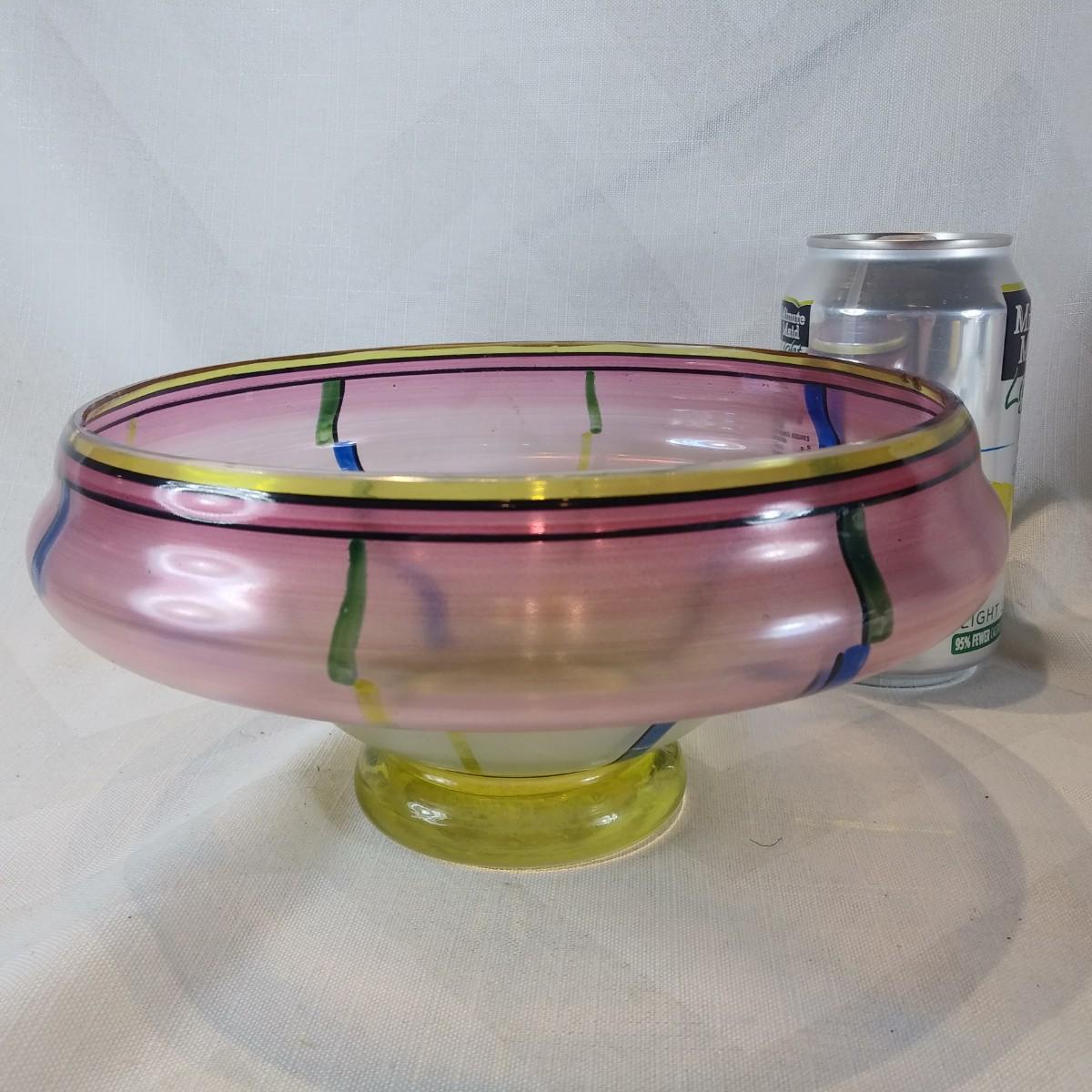 This auction lot is for a Art Deco Art Glass Bowl. Quite pretty and unusual. It has two small chips on the inside rim - see pictures. Colors are wonderful - where you gonna find another.