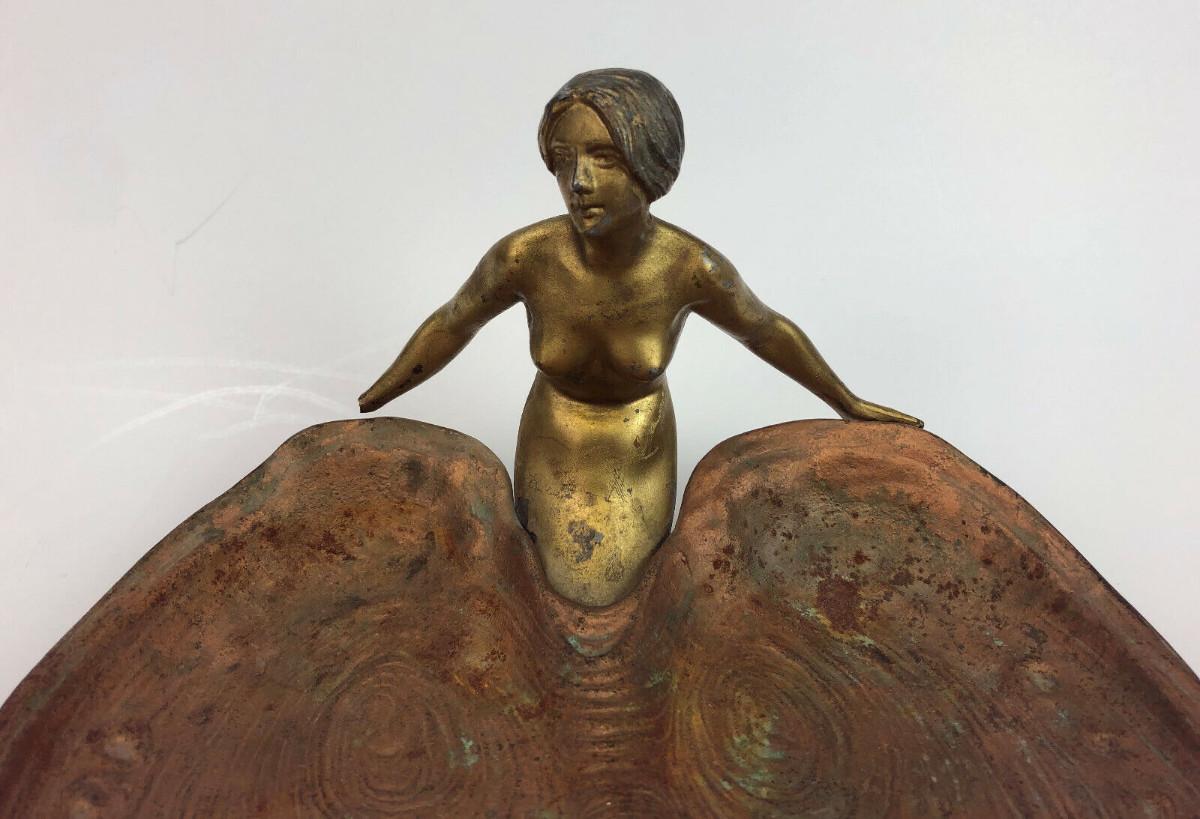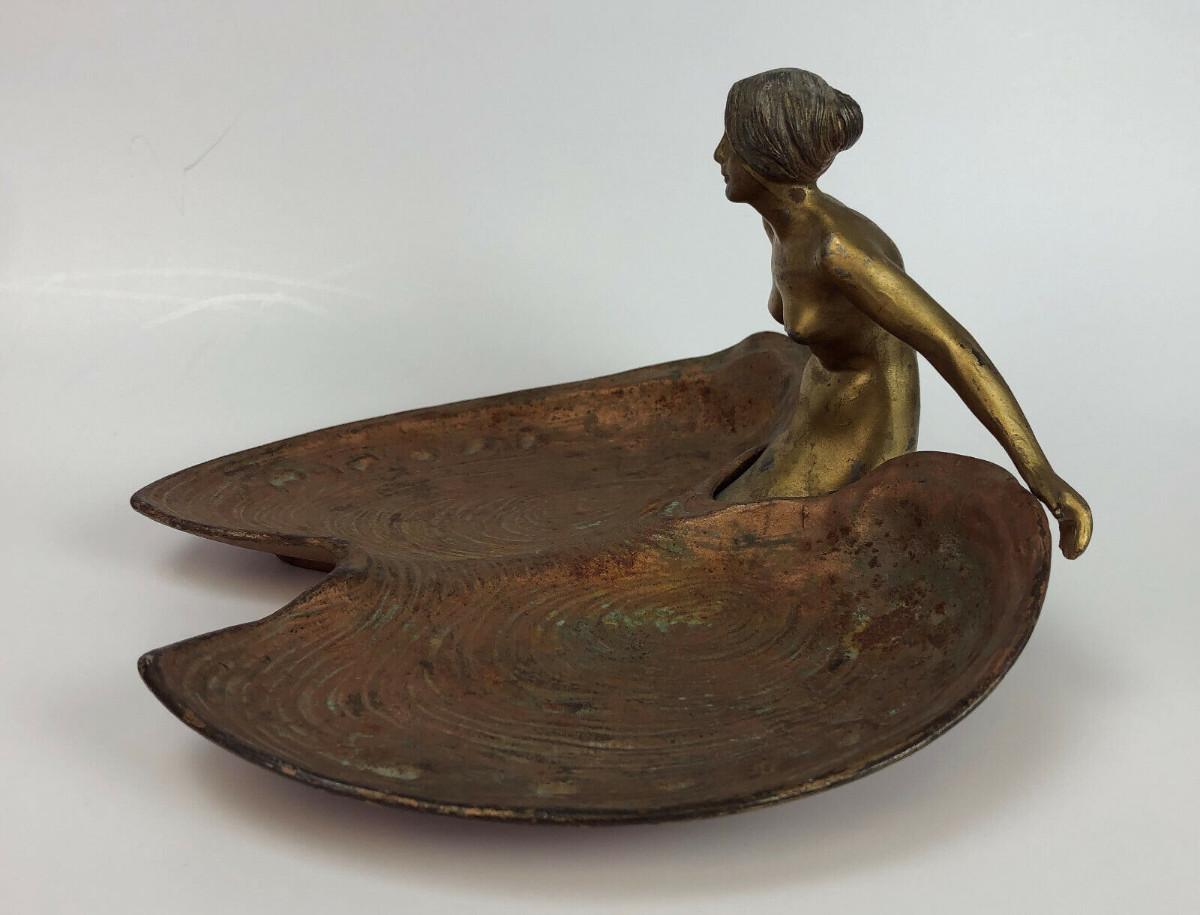 art deco art nouveau NUDE FEMALE FIGURE AT POND TRAY