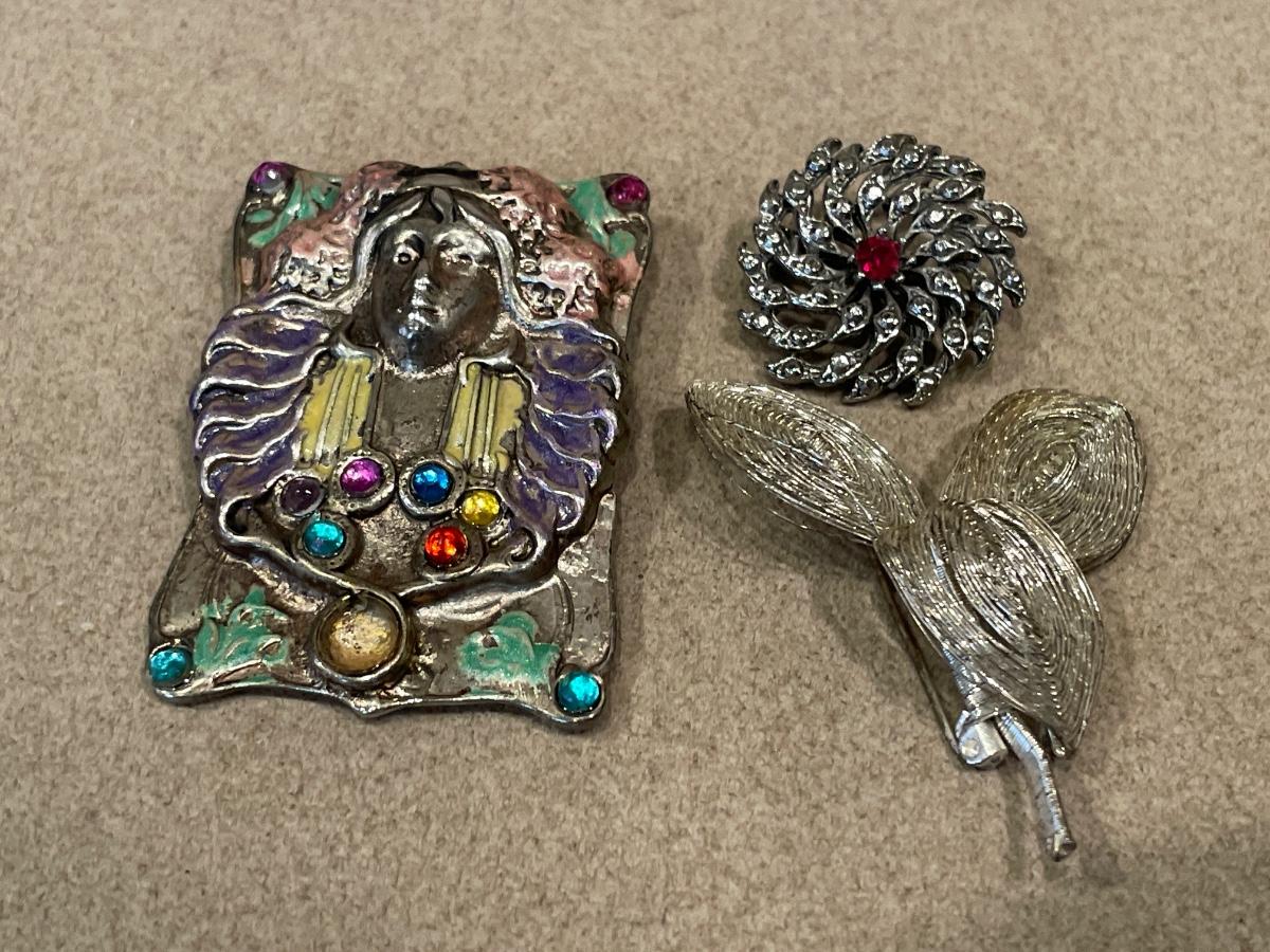 Art deco brooch and 2 vintage brooches