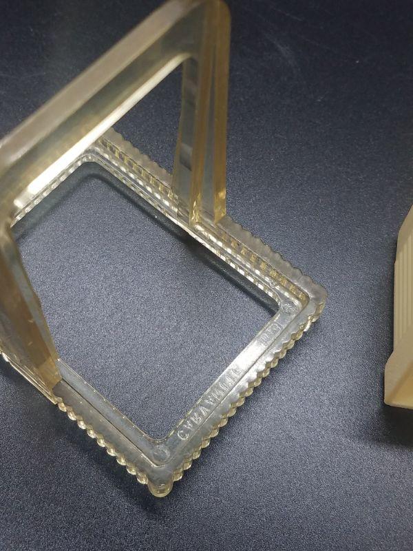 good condition, yellowing to plastic stand. push mechanism and bottom stoppers in tact.