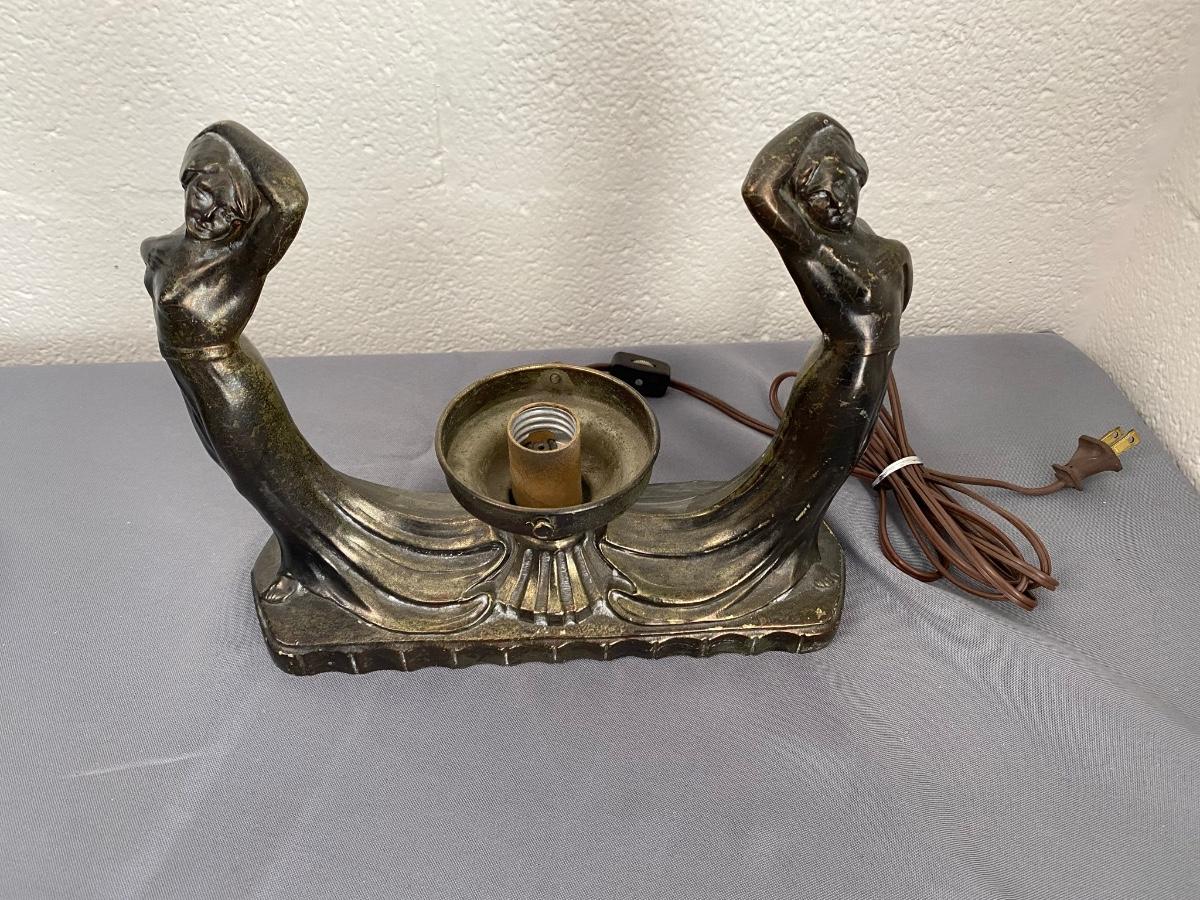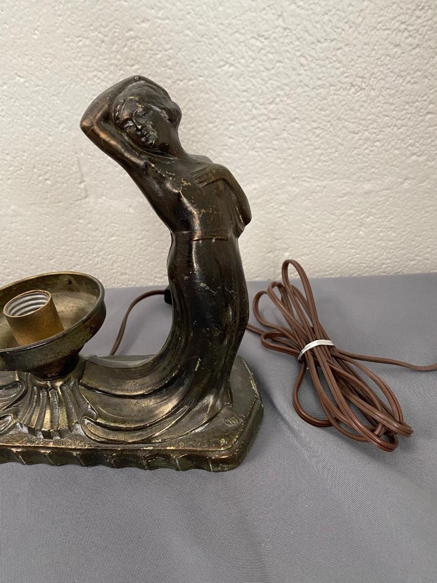 Art Deco Cast Metal Swooning Ladies Table Lamp