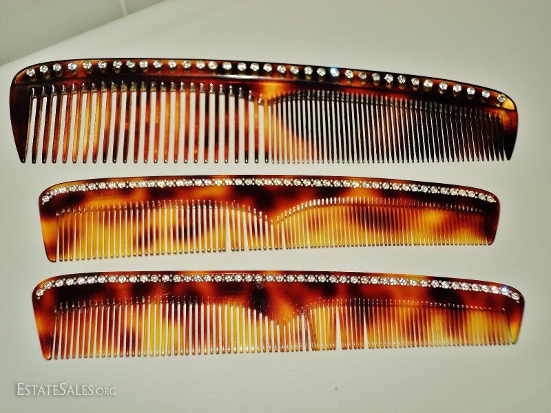 Magnificent Art Deco set of Tortoise combs with crystal stones by famous French accessory Designer Francois Huchard, France. Circa late 1930's early 1940's and exquisite.