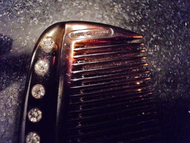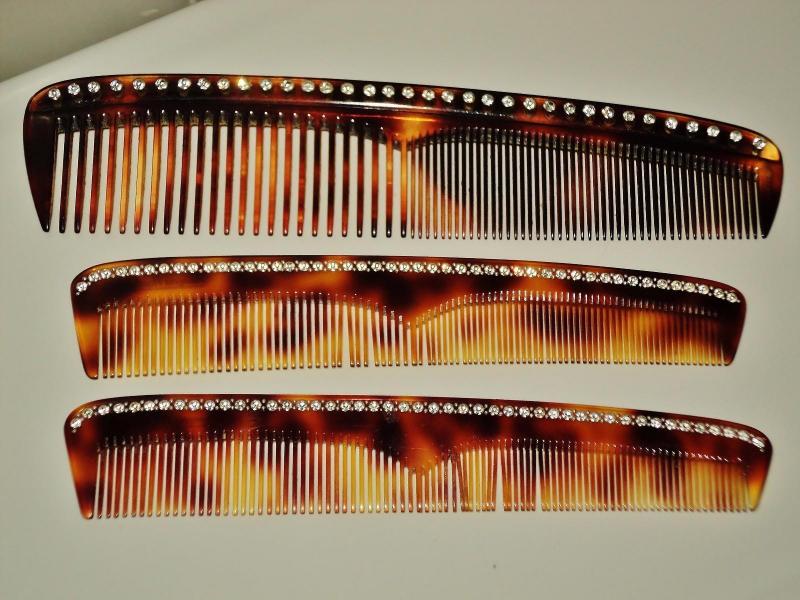Magnificent Art Deco set of Tortoise combs with crystal stones by famous French accessory Designer Francois Huchard, France. Circa late 1930's early 1940's and exquisite.