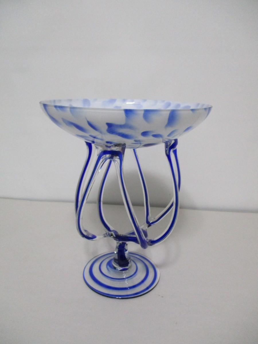 Art Deco Glass Cobalt Blue Octopus Jellyfish Compote Dish