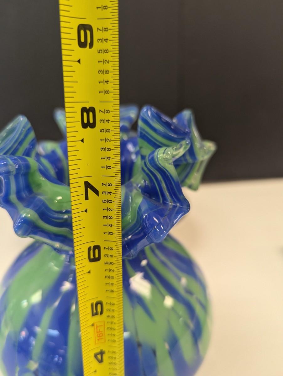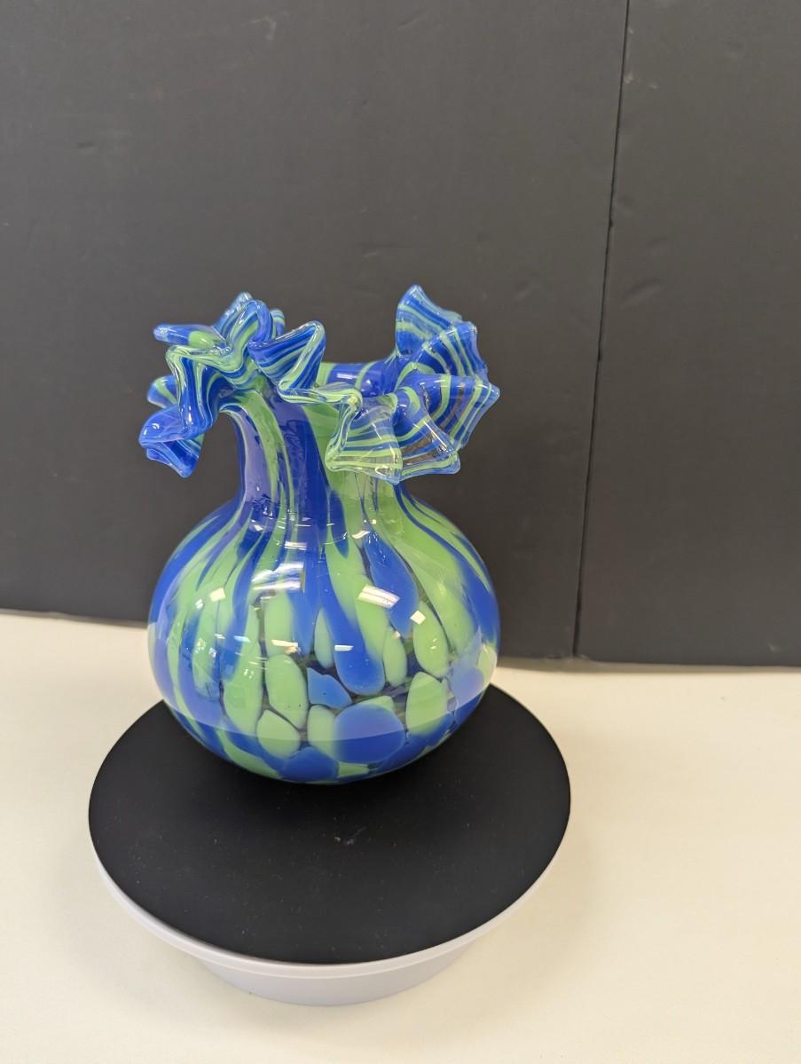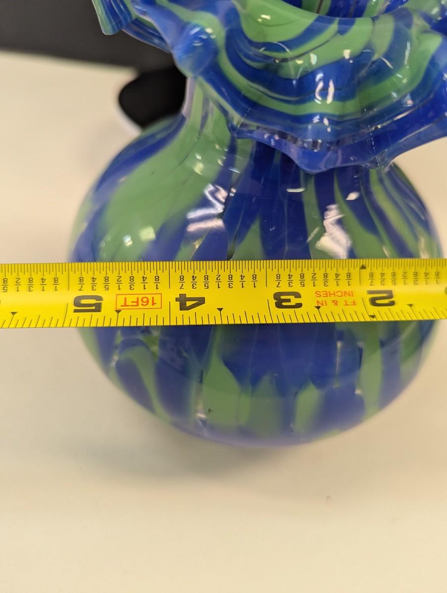 Art Deco Glass Vase Hand Blown Green Blue Swirl