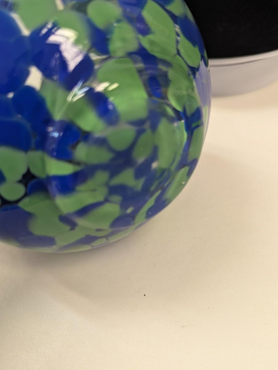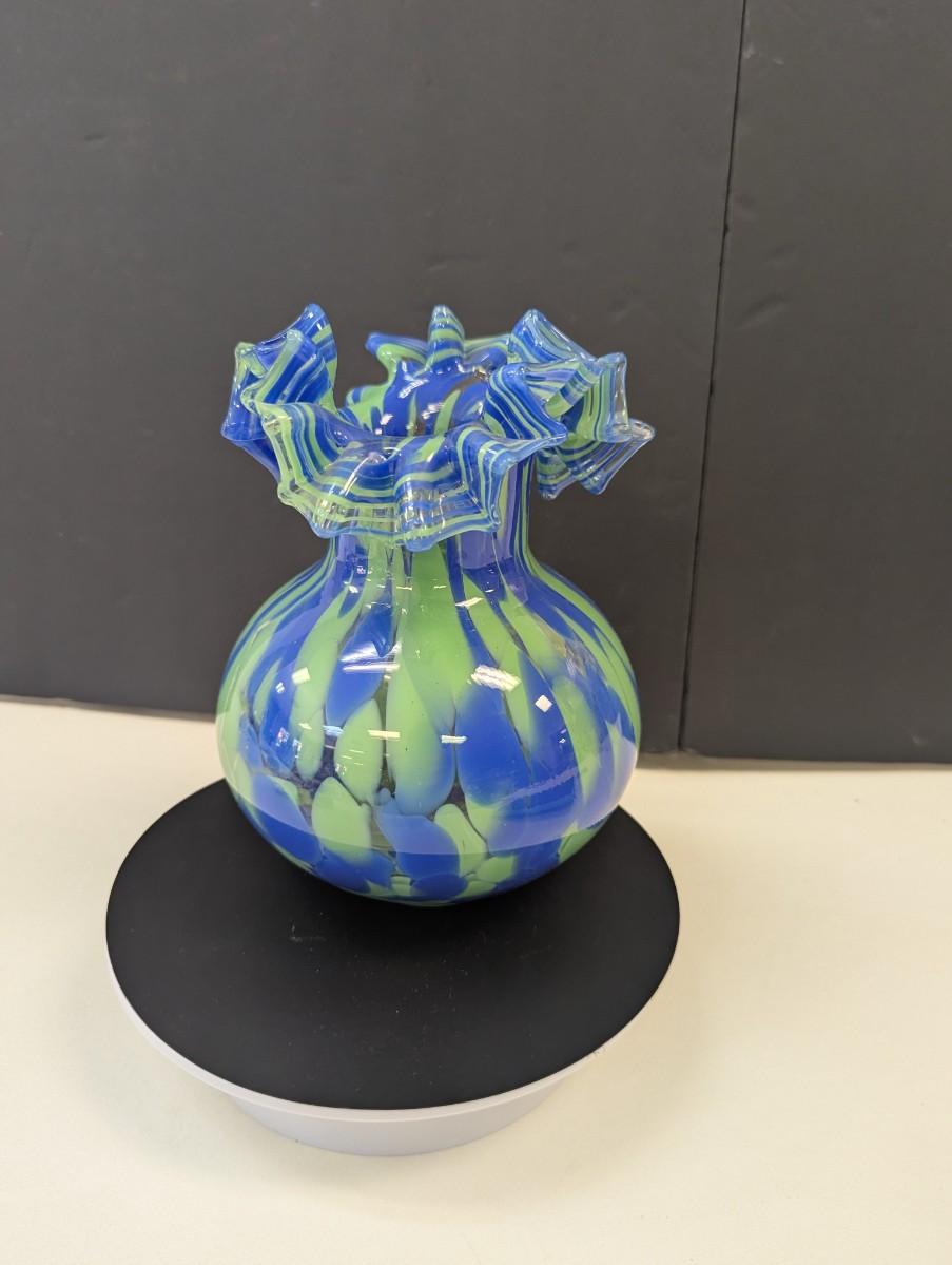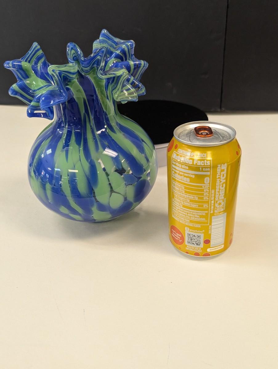 Art Deco Glass Vase Hand Blown Green Blue Swirl