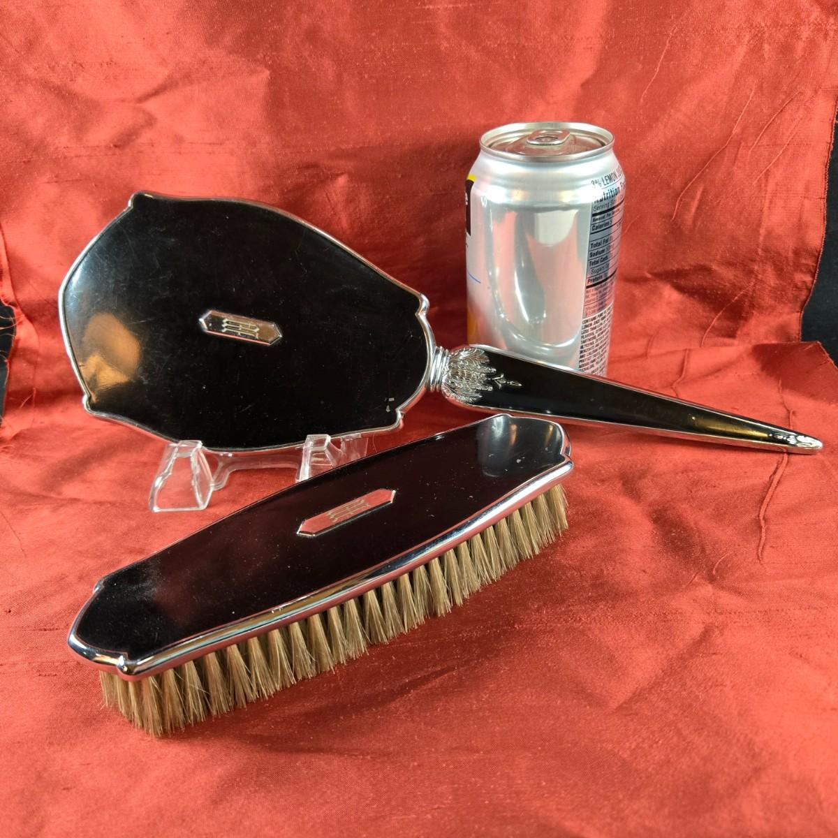 Art Deco Hand Mirror & Brush Set plus Powder Box