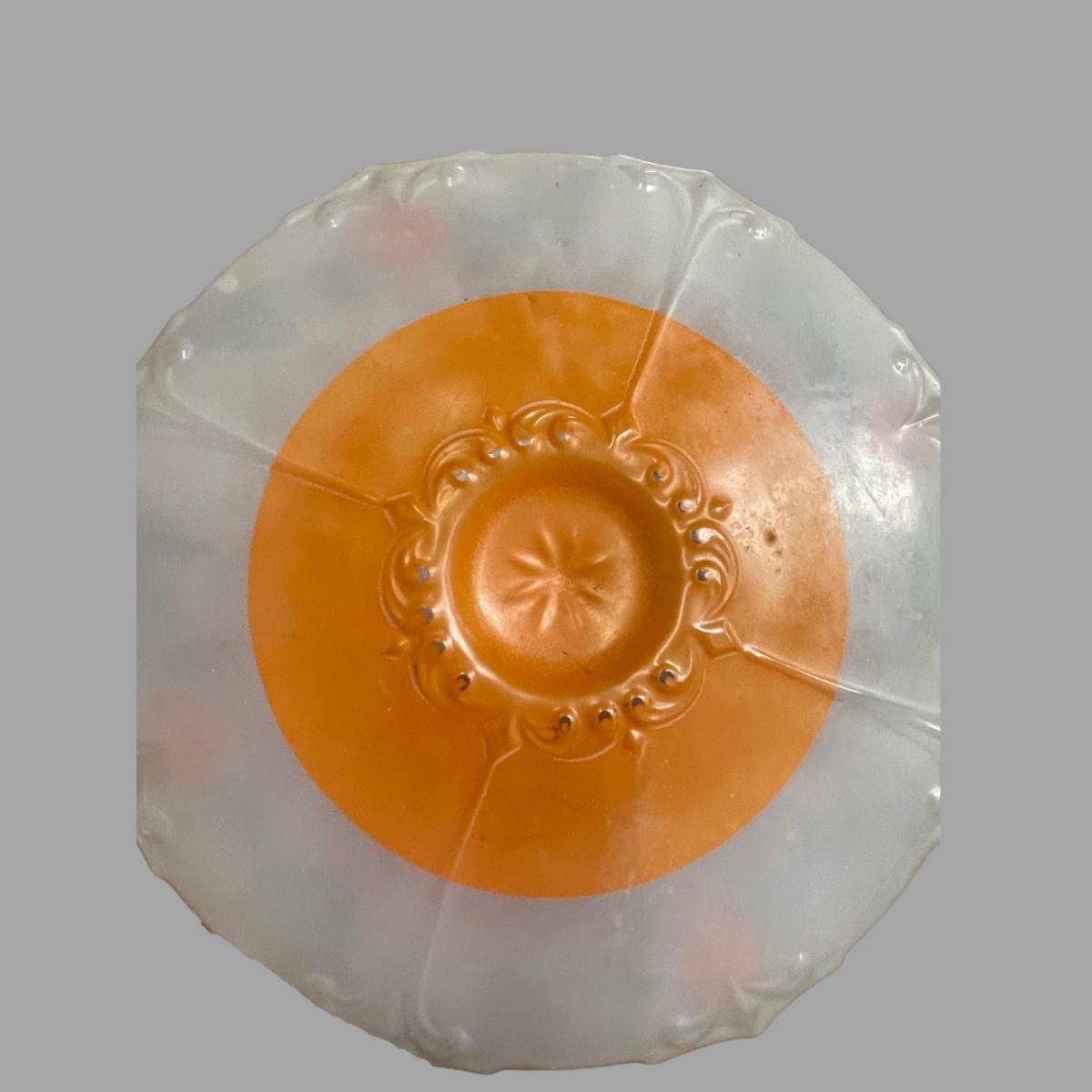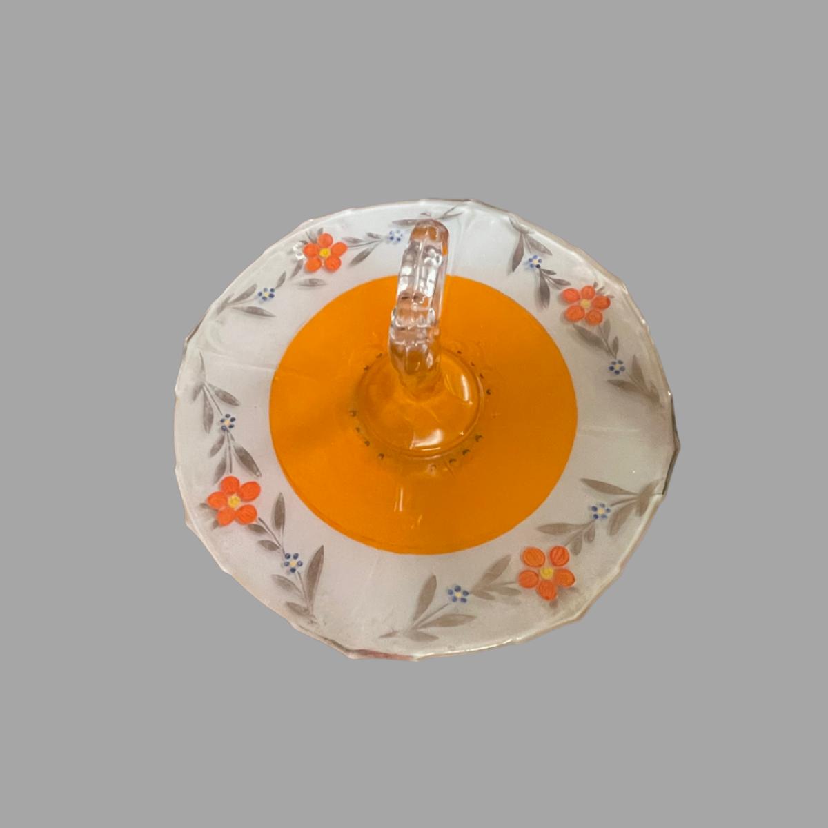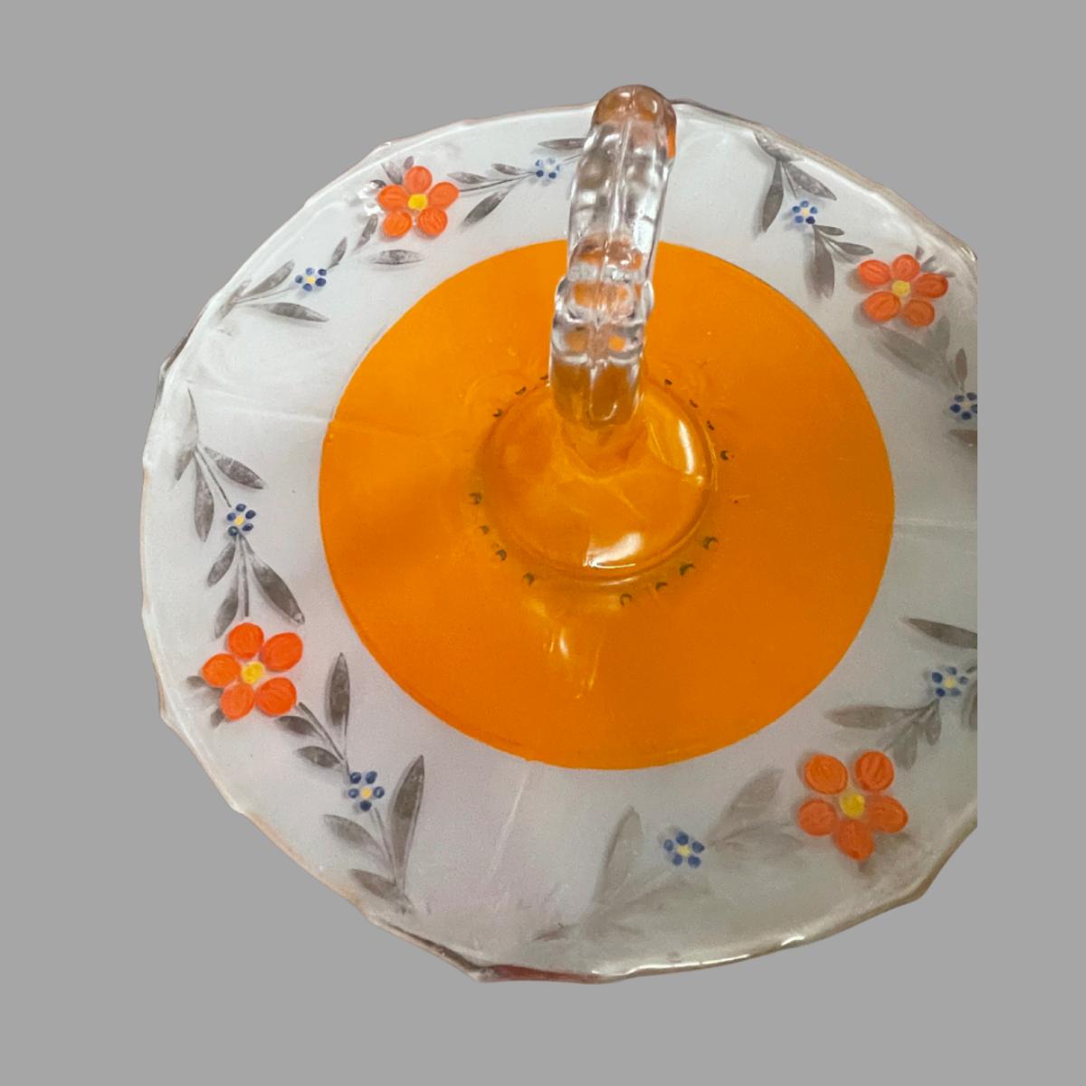 This is an exquisite piece from Indiana Glass. Inverted orange paint poppy flowers platter. measures 12"