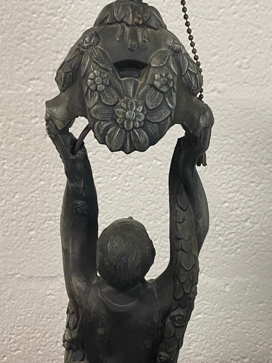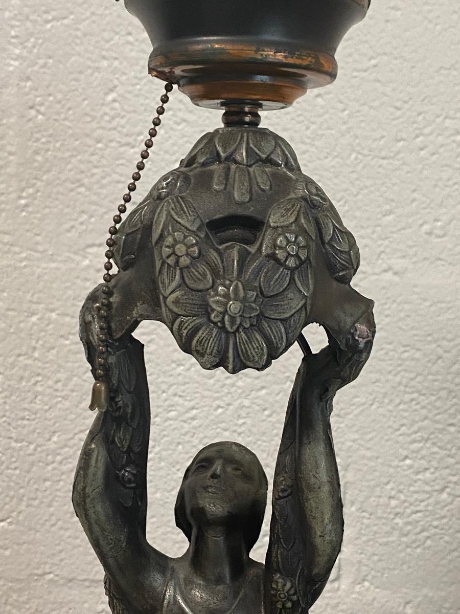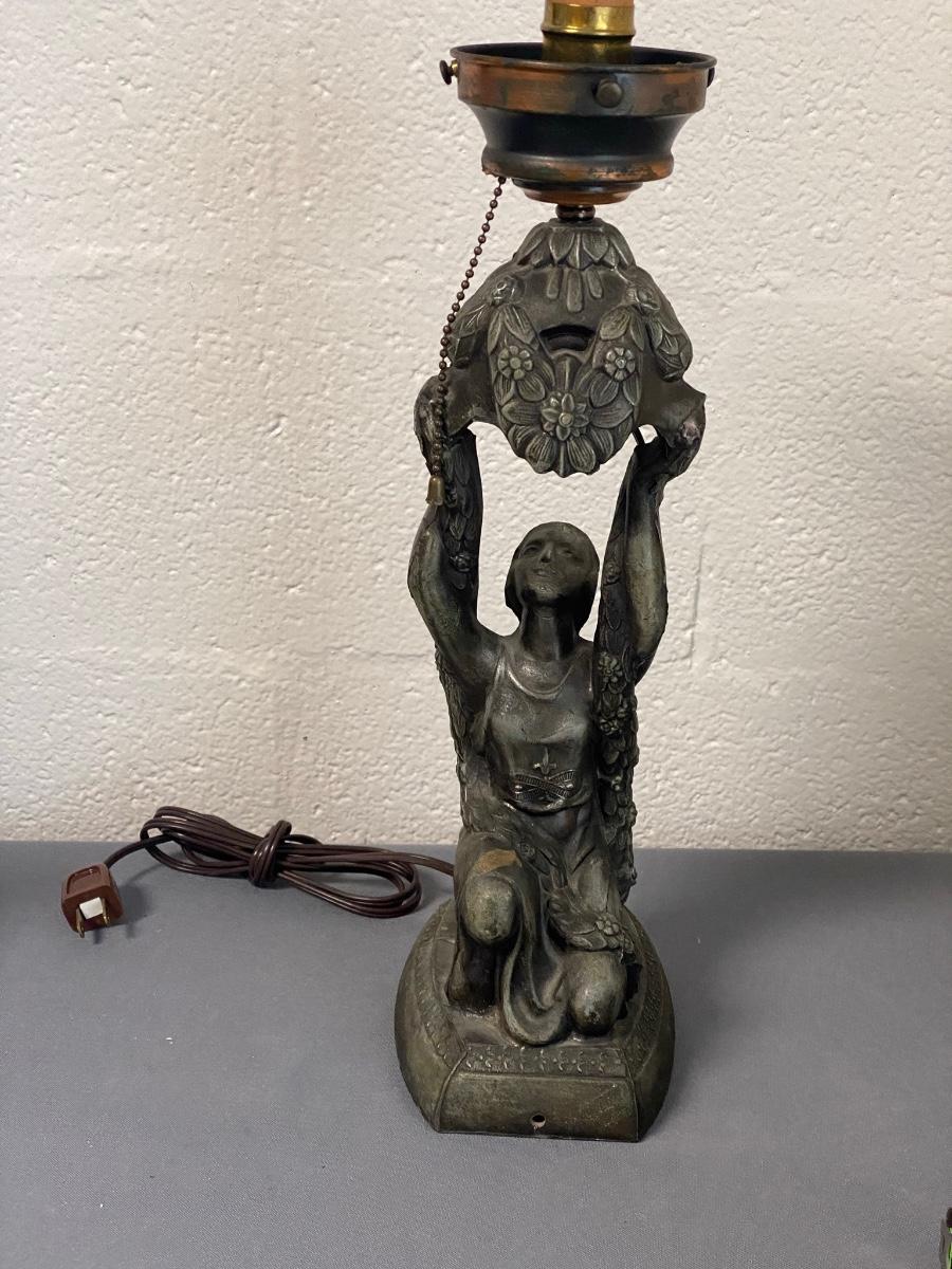 Art Deco Joan of Arc Metal Table Lamp, replicated after La Belle