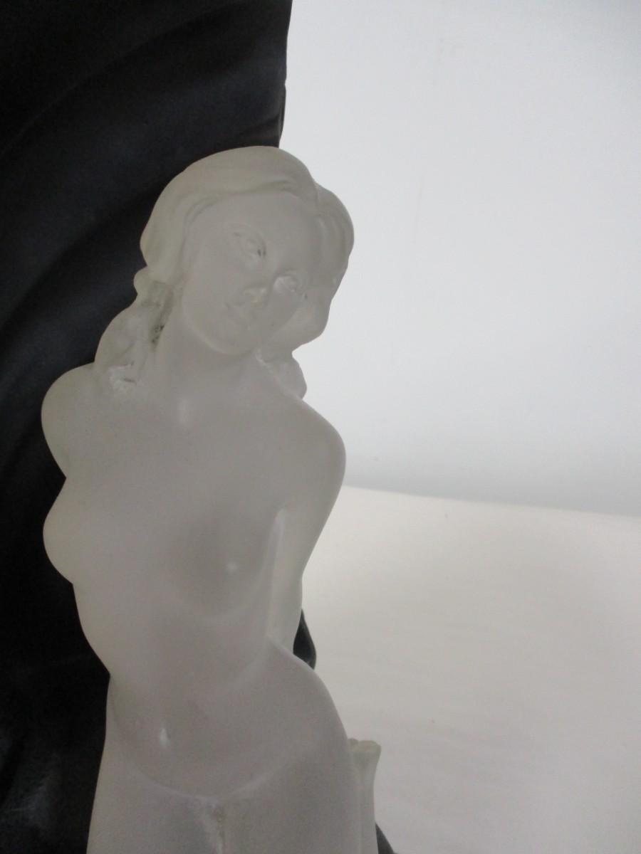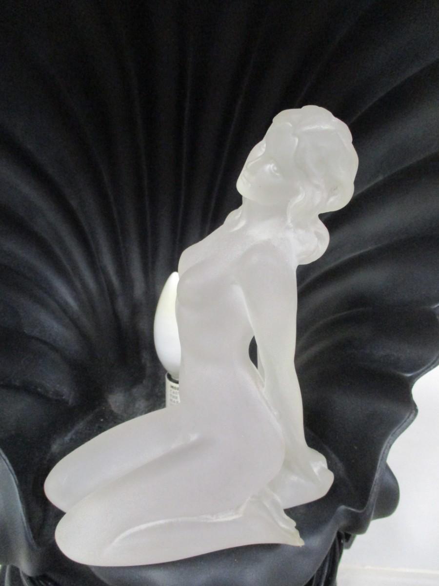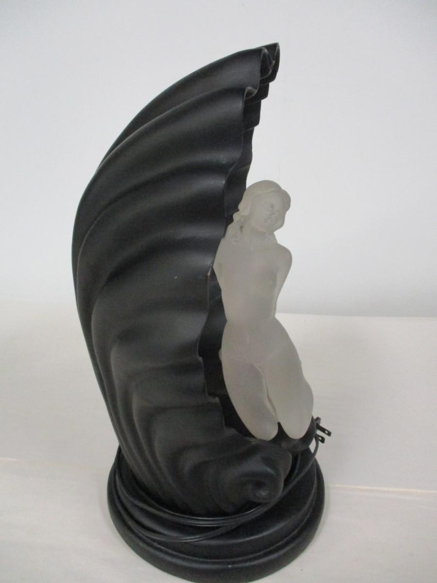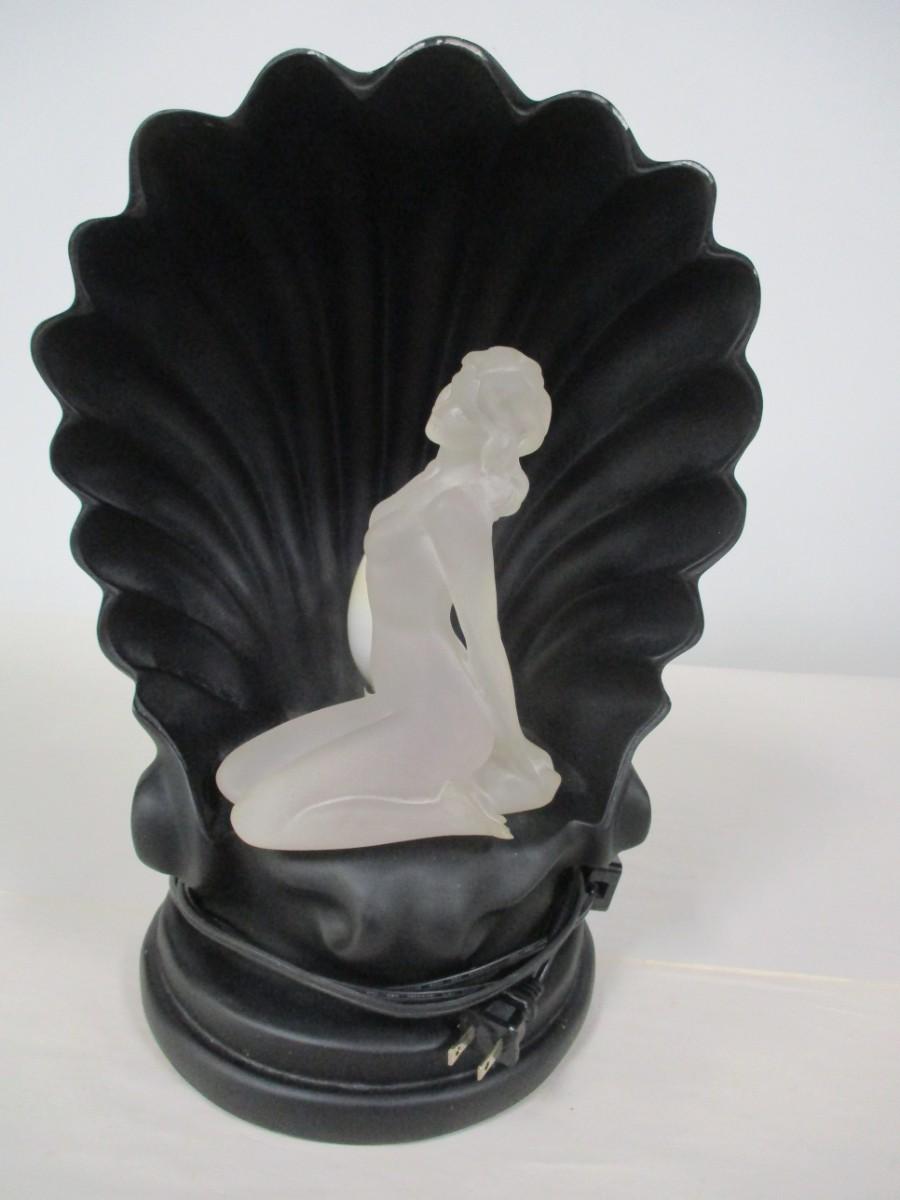 Vintage Art Deco Nude in Shell Base Backdrop Lucite Figure Changing Color Light