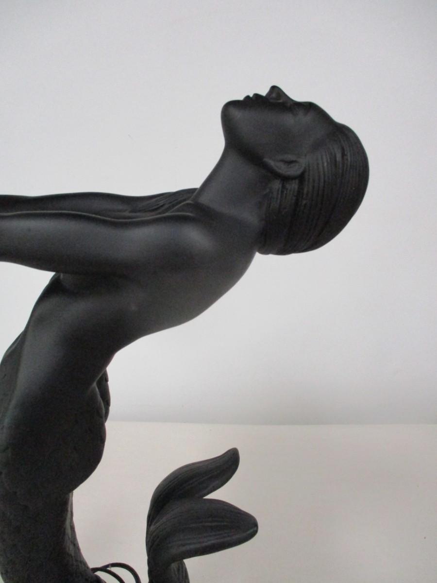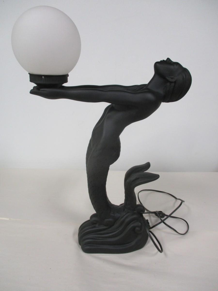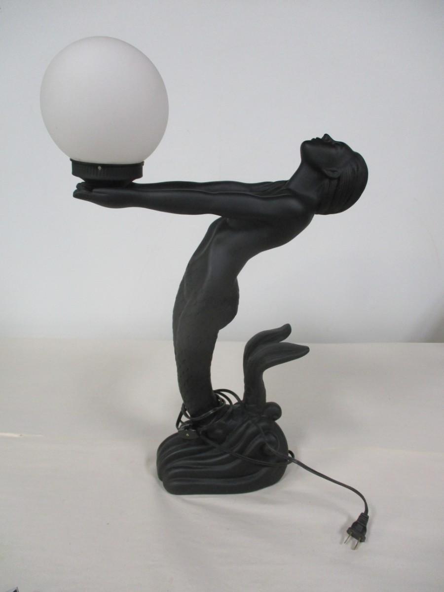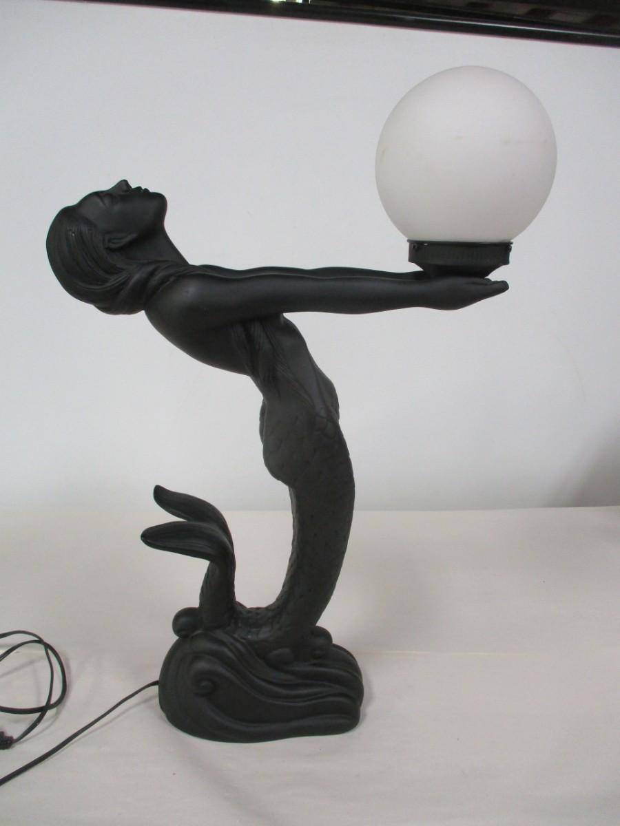 Art Deco Nude Mermaid Sculptural Resin Table Lamp