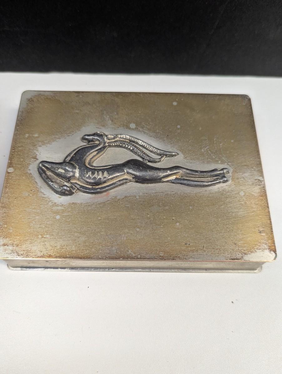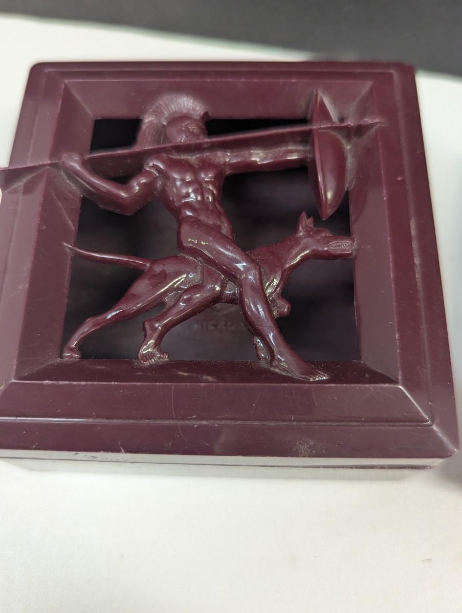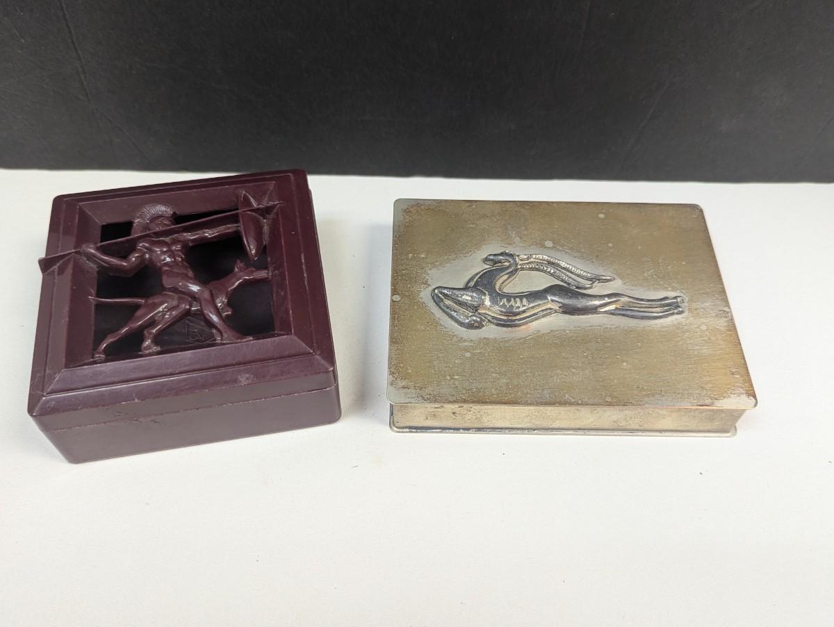 Art Deco Men's Dresser Box Hard Plastic Warrior & Dog Signed Hickok Art Deco & Art Deco Copper Colored Metal Gazelle Trinket Box