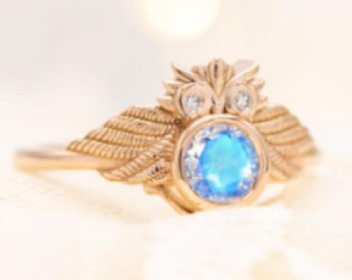 Art Deco Moonstone Engagement Ring Owl Style Wedding Ring
