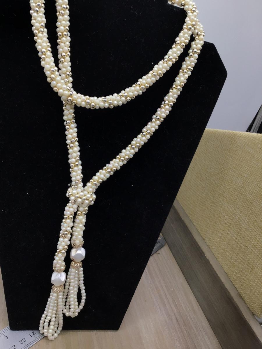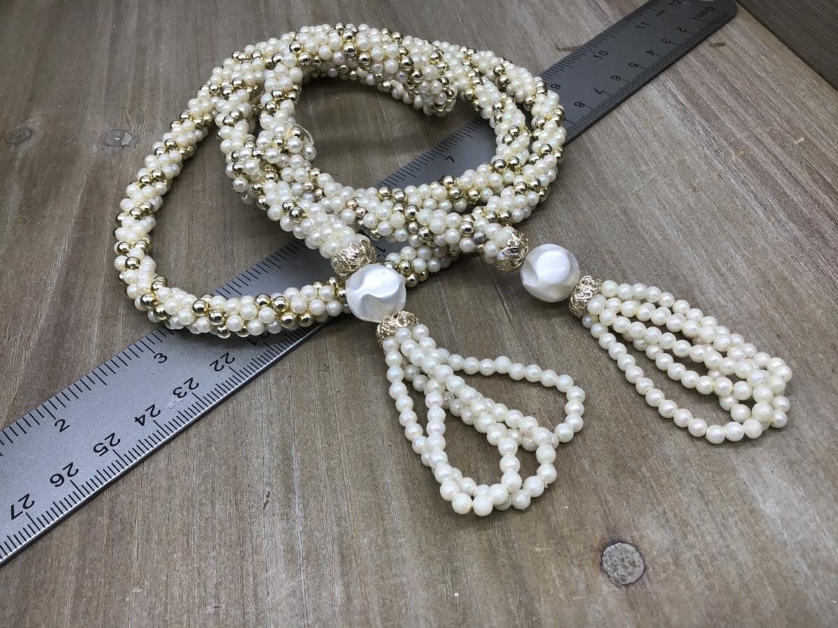 Art Deco Pastel Microbead Flapper Lariat Necklace