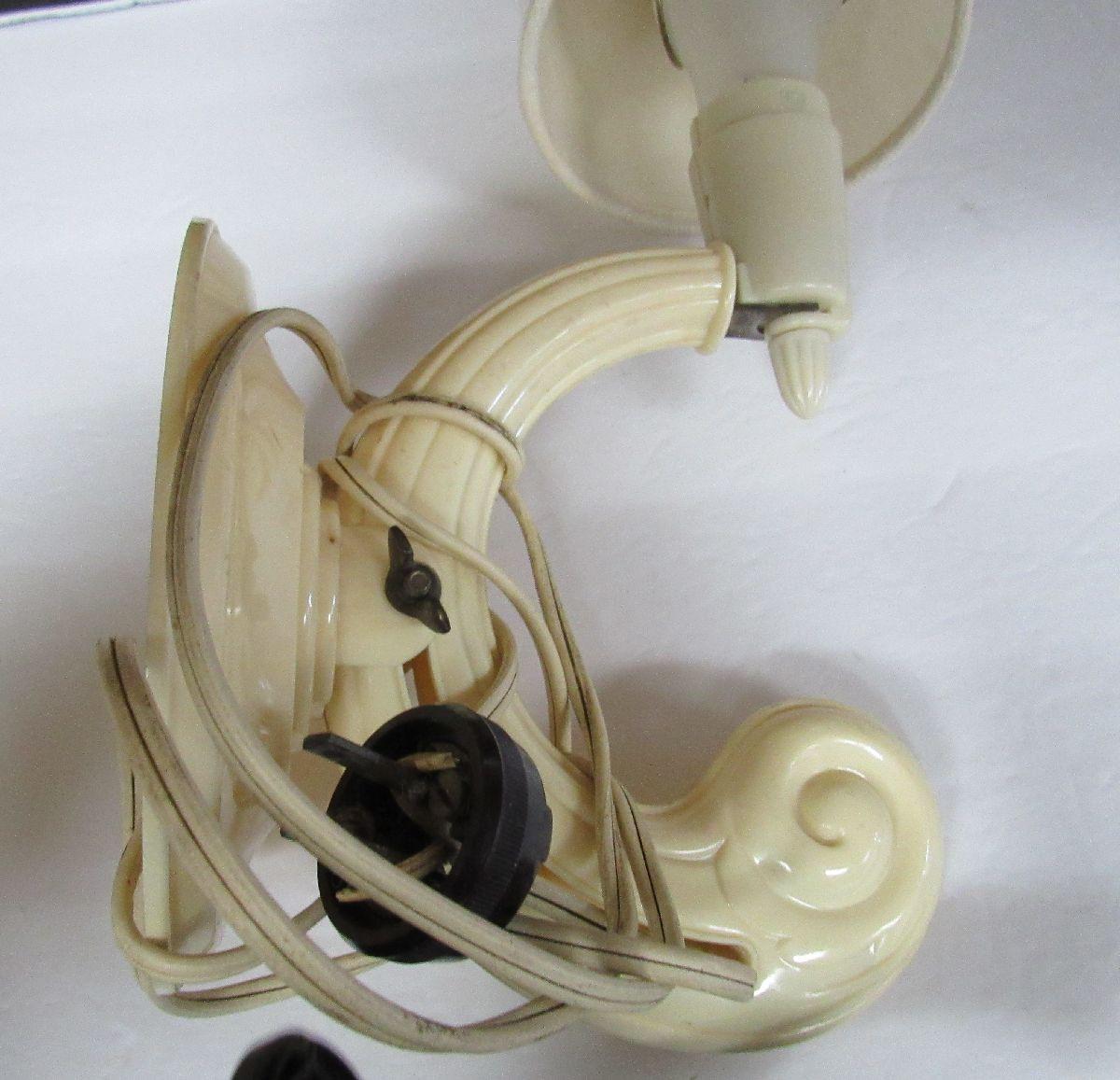Art Deco Plastic Wall Light Works and Old Wicker Lamp
