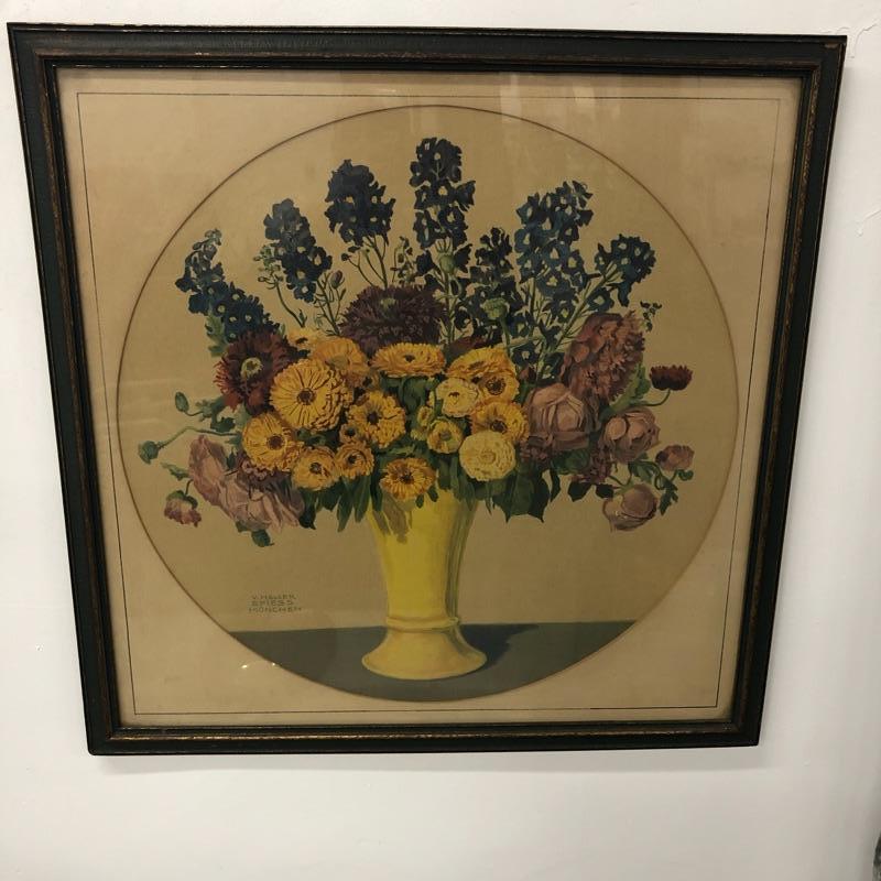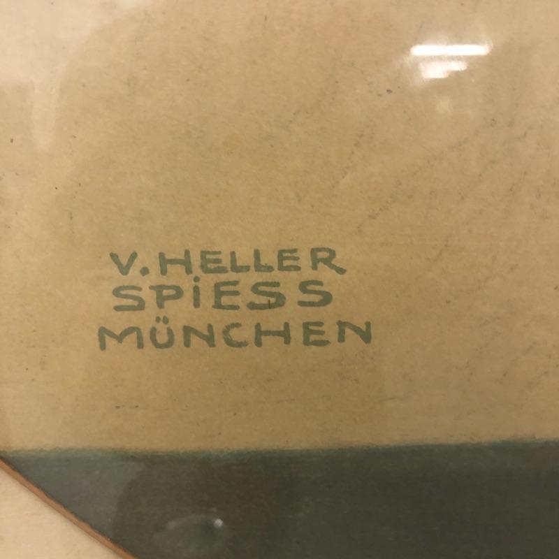 This impressive Period Art Deco Print in a Period frame by Van Heller Spiess Munchen is 27" in diameter. ( measurement is for art only)