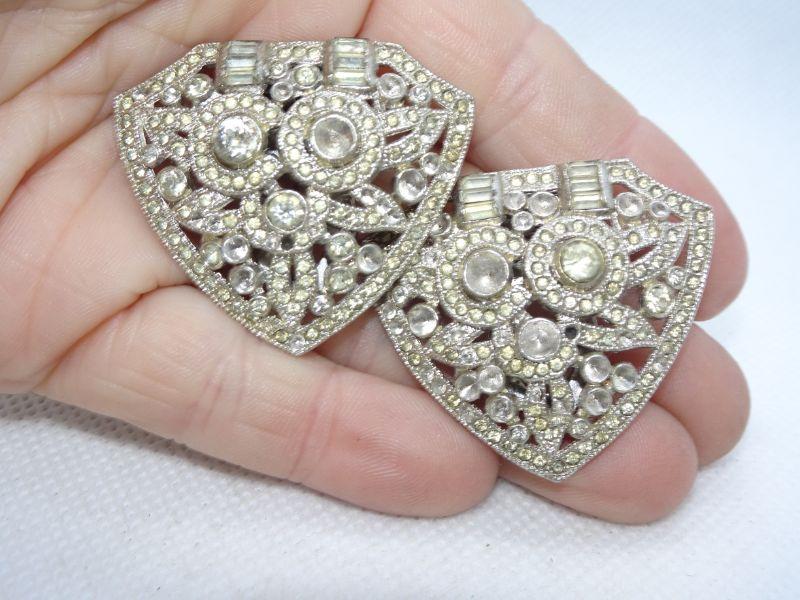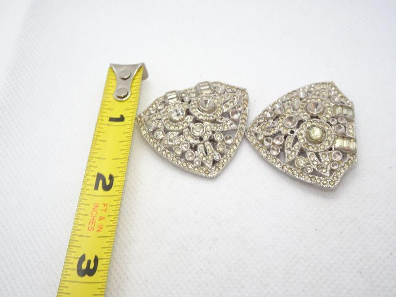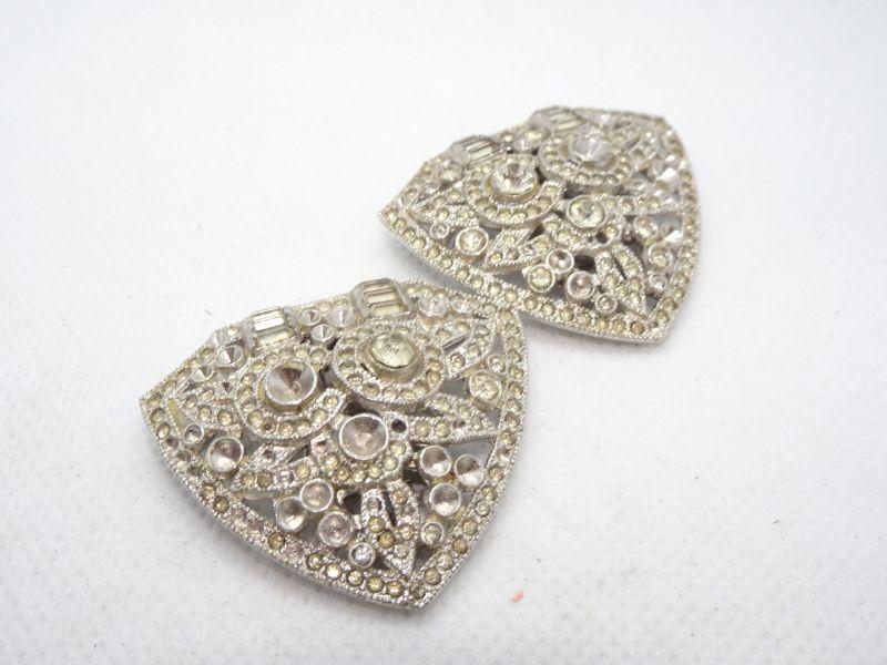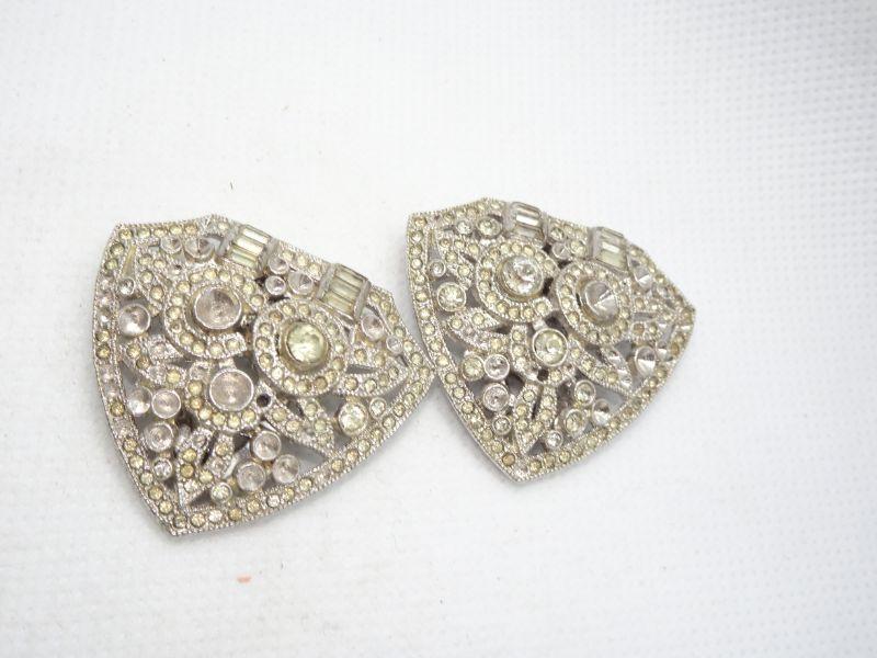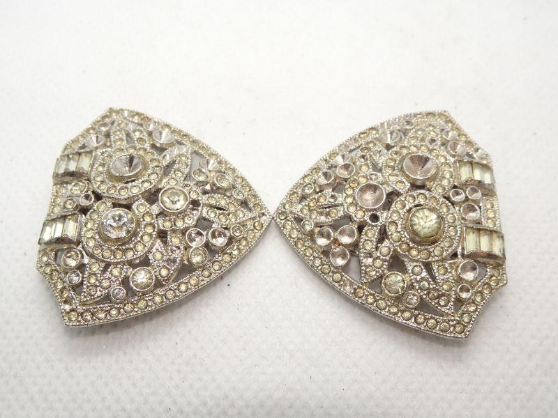 Art Deco Rhinestone Silver Tone Shoe Clips - Missing Stones