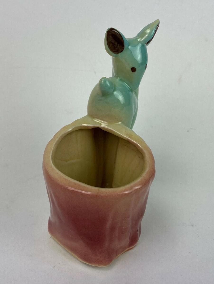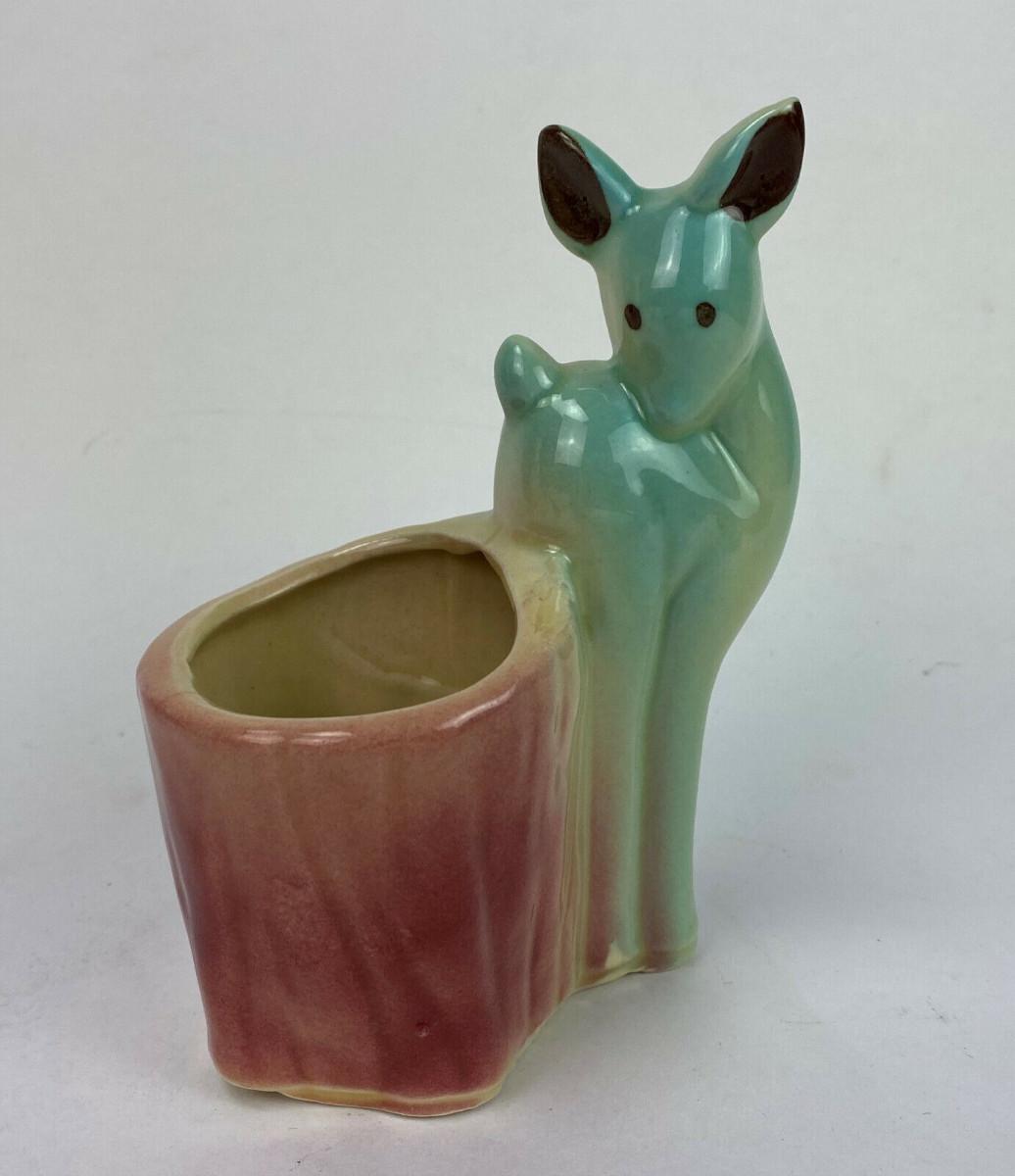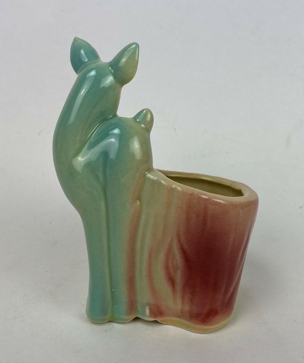 Excellent condition on this vintage figural Deer Planter made by the Shawnee Pottery of Zanesville, Ohio...they produced artware from 1937 until 1961...Small, this piece stands just 5.75" tall...Pastel coloring