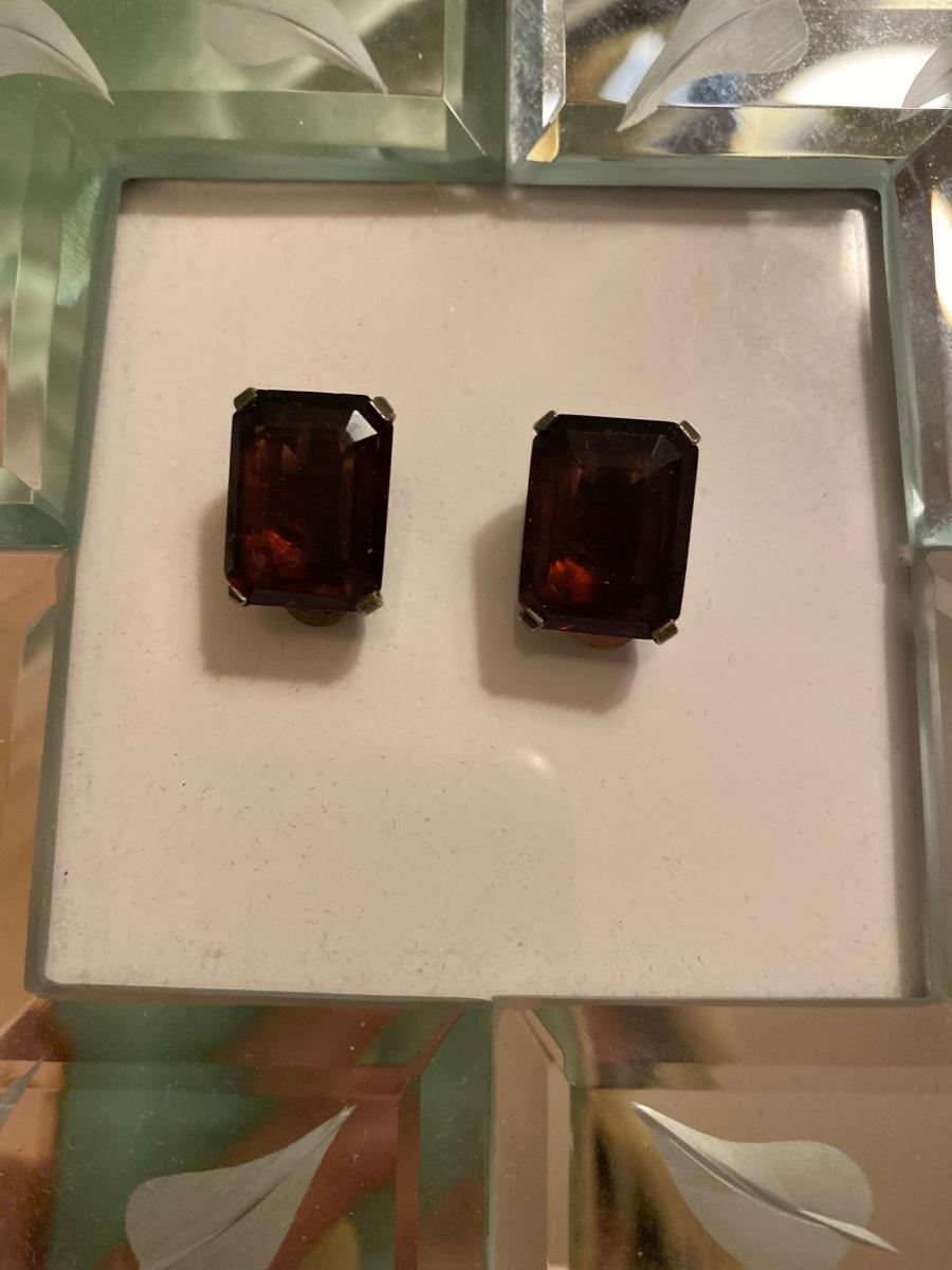 Art Deco sterling & amethyst earrings, clip-on. Excellent condition, approx 1/2”w x 5/8”h.