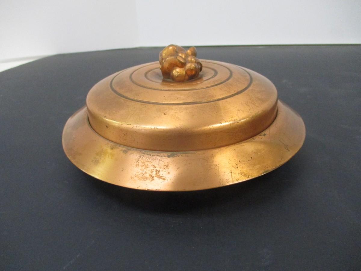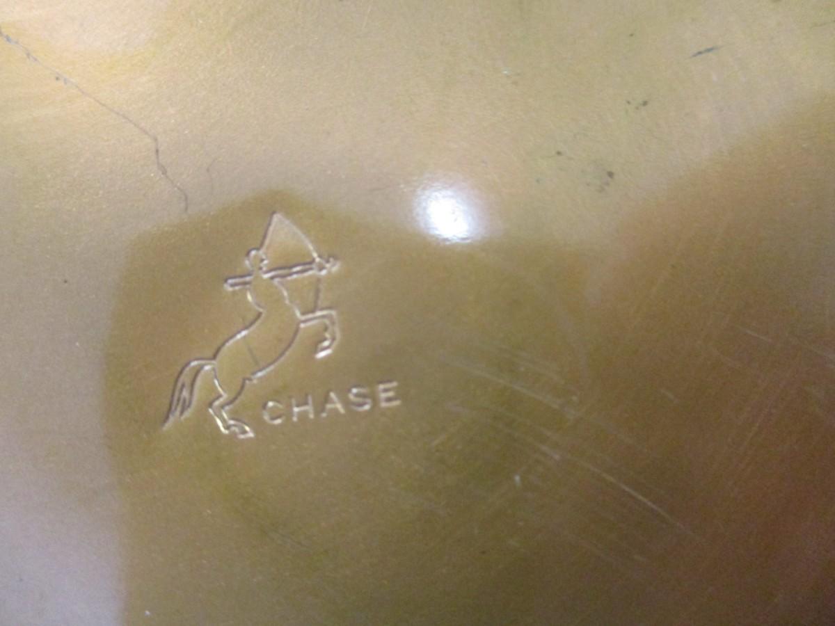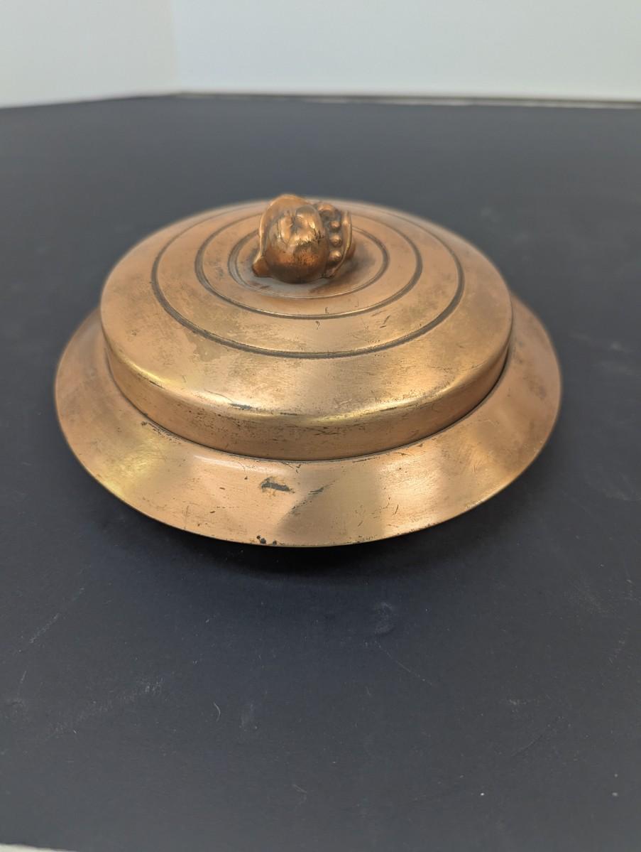 The Art Deco Style Chase Brass & Glass Trinket Box is a stunning collectible piece that showcases the elegant and ornate design of the Art Deco era. Made of brass and glass, this trinket box features intricate detailing and a luxurious patina, making it a perfect addition to any vintage-inspired decor. With its sleek and sophisticated design, this trinket box is sure to be a prized possession for any collector of fine art and decorative objects.