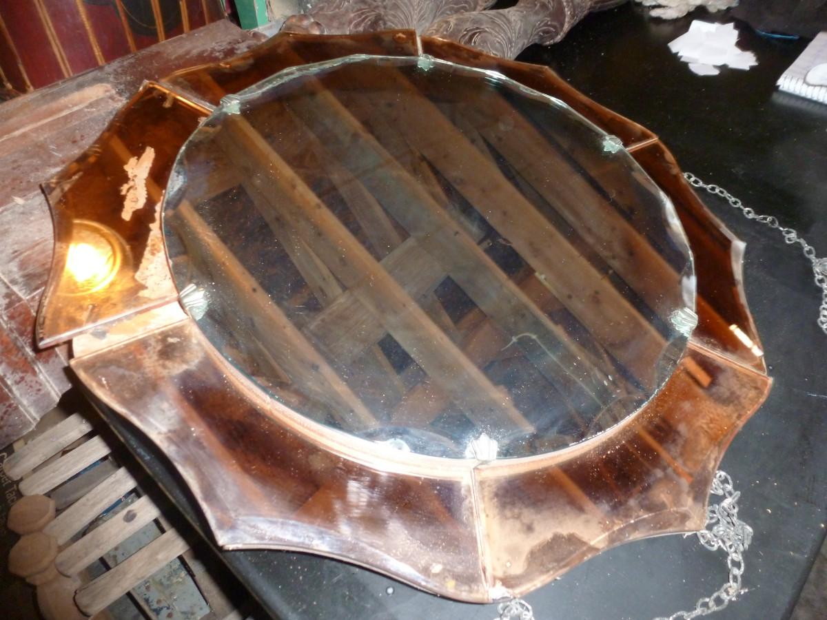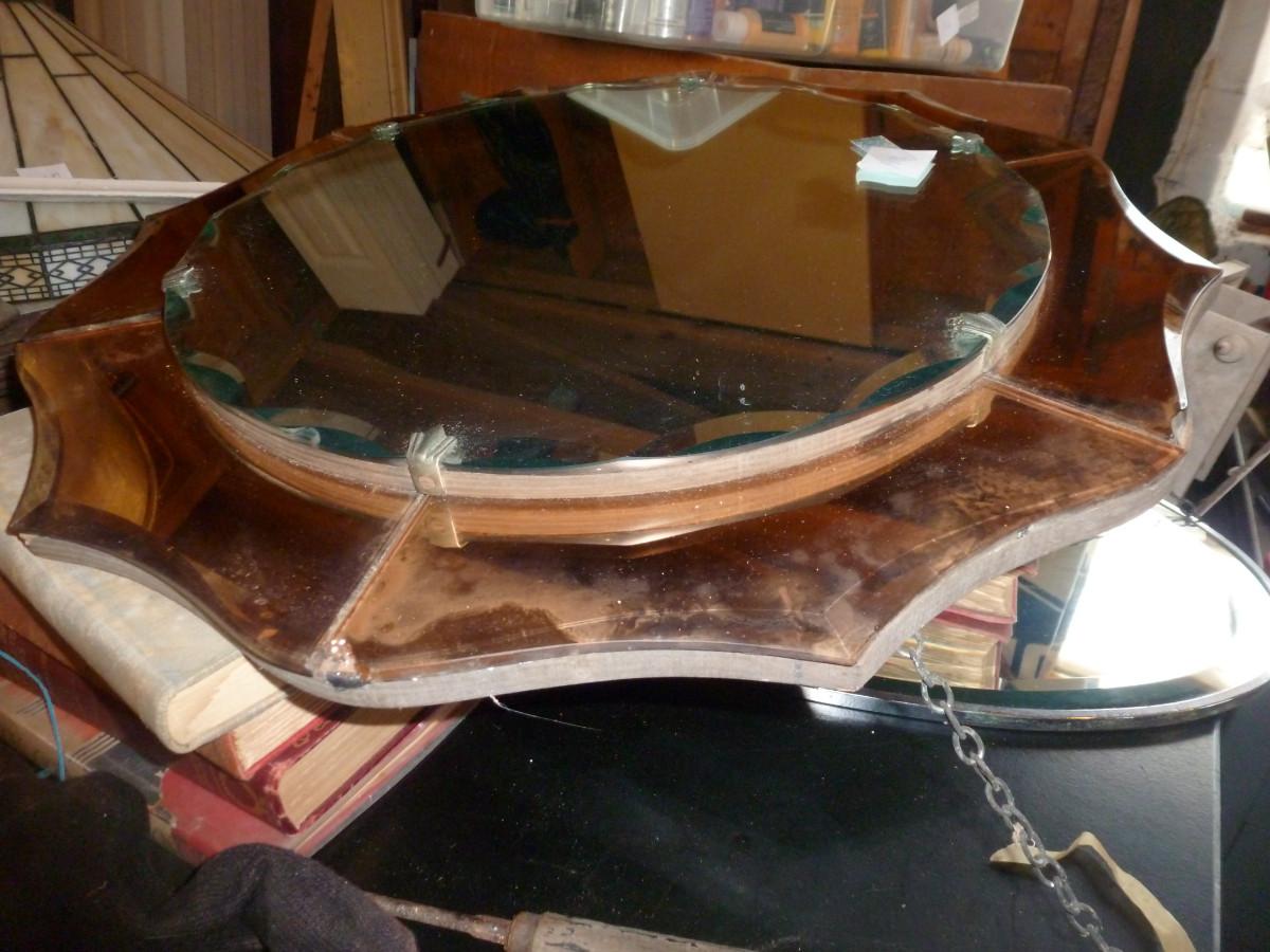 Art Deco 'Sun' Mirror. Damage to corners and glass. Unusual piece.