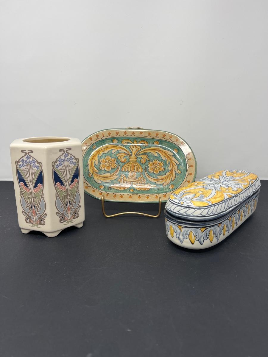 Art Nouveau Vase, Trinket, and Dish Trio - Signed