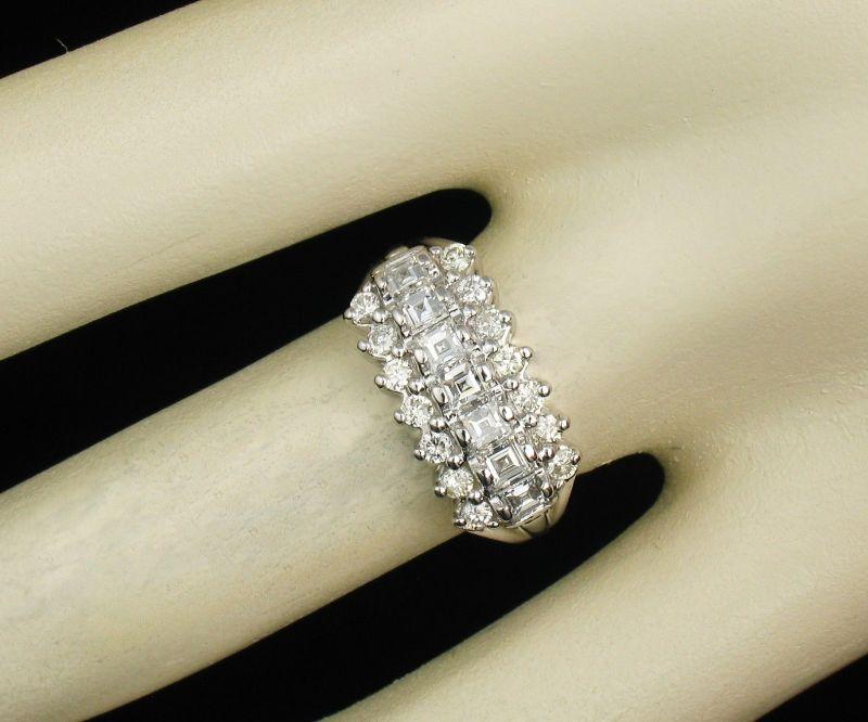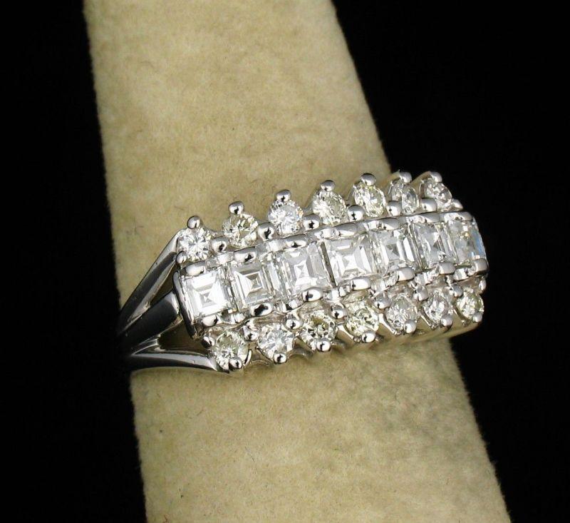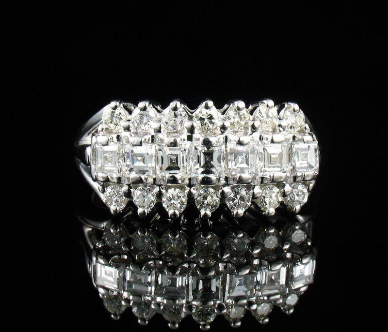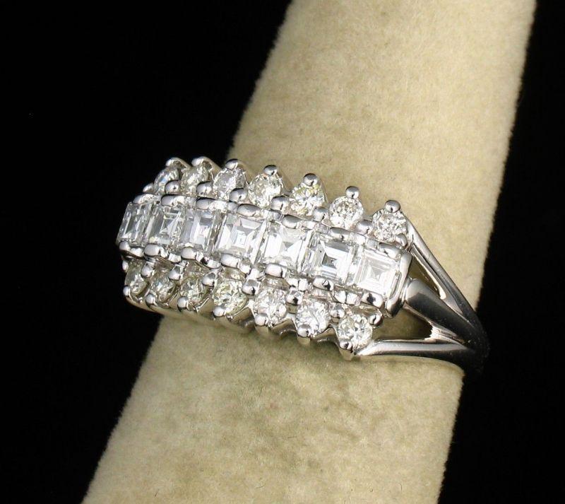 Description: ART DECO VINTAGE ESTATE CARRE CUT NATURAL .98ctw DIAMOND SOLID 14K WHITE GOLD WIDE BAND RING