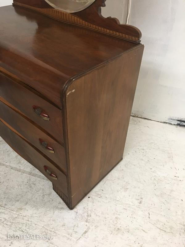 Art Deco Walnut Chest of Drawers w/mirror. Lot#