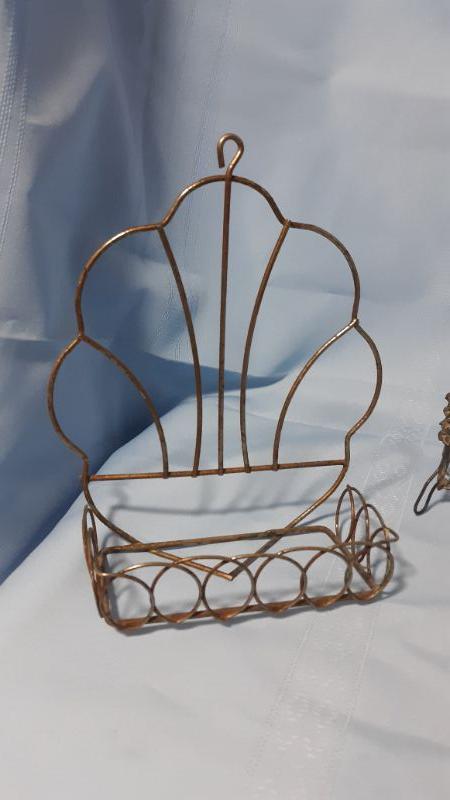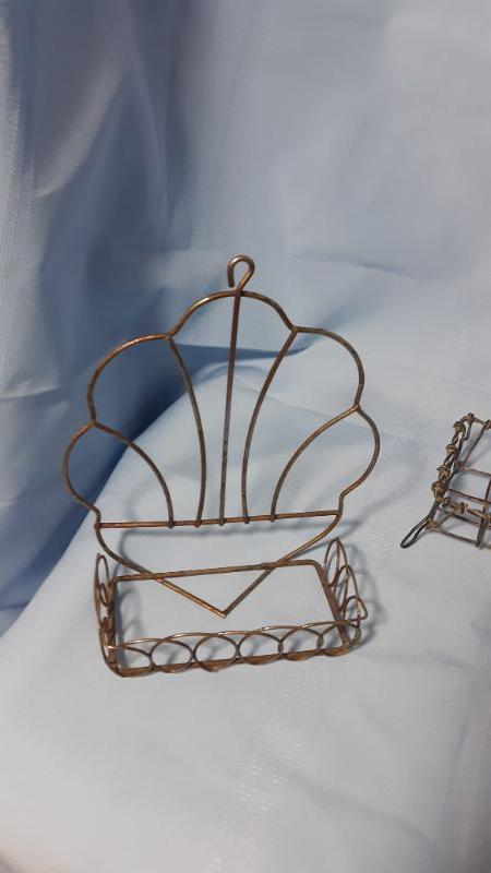 Art deco wire soap dish, fan back, 7"H x 6"W
