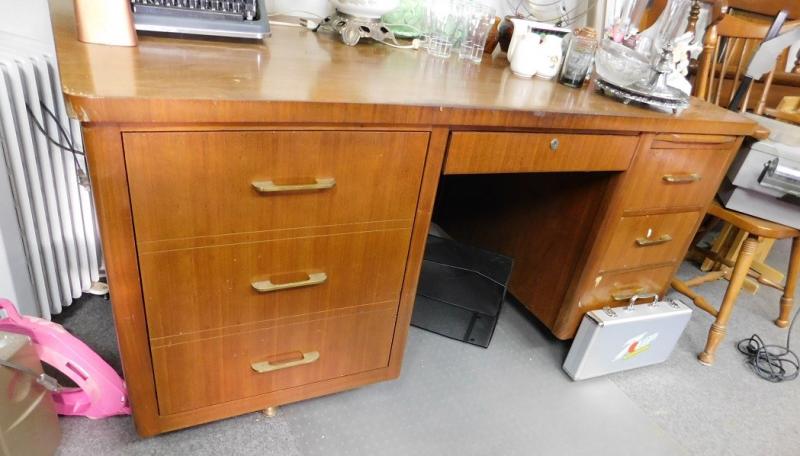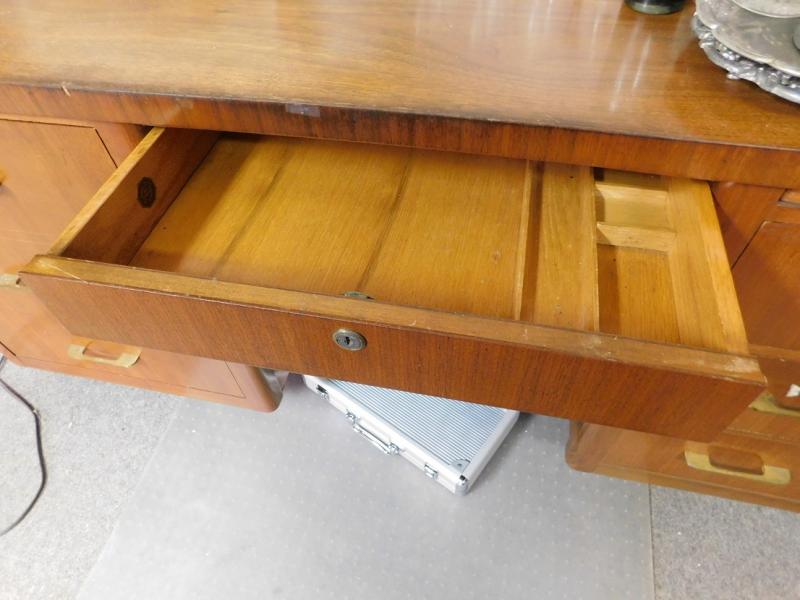 Art Deco Wise Economy Alma Desks Executive Desk has some wear and scratches. Very solid and good finish.