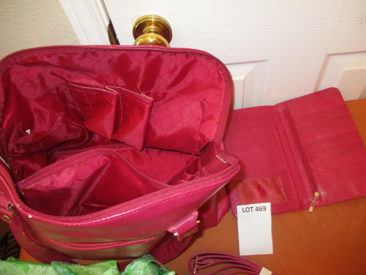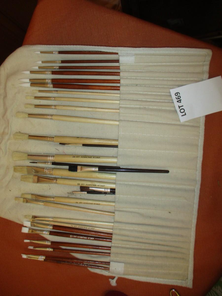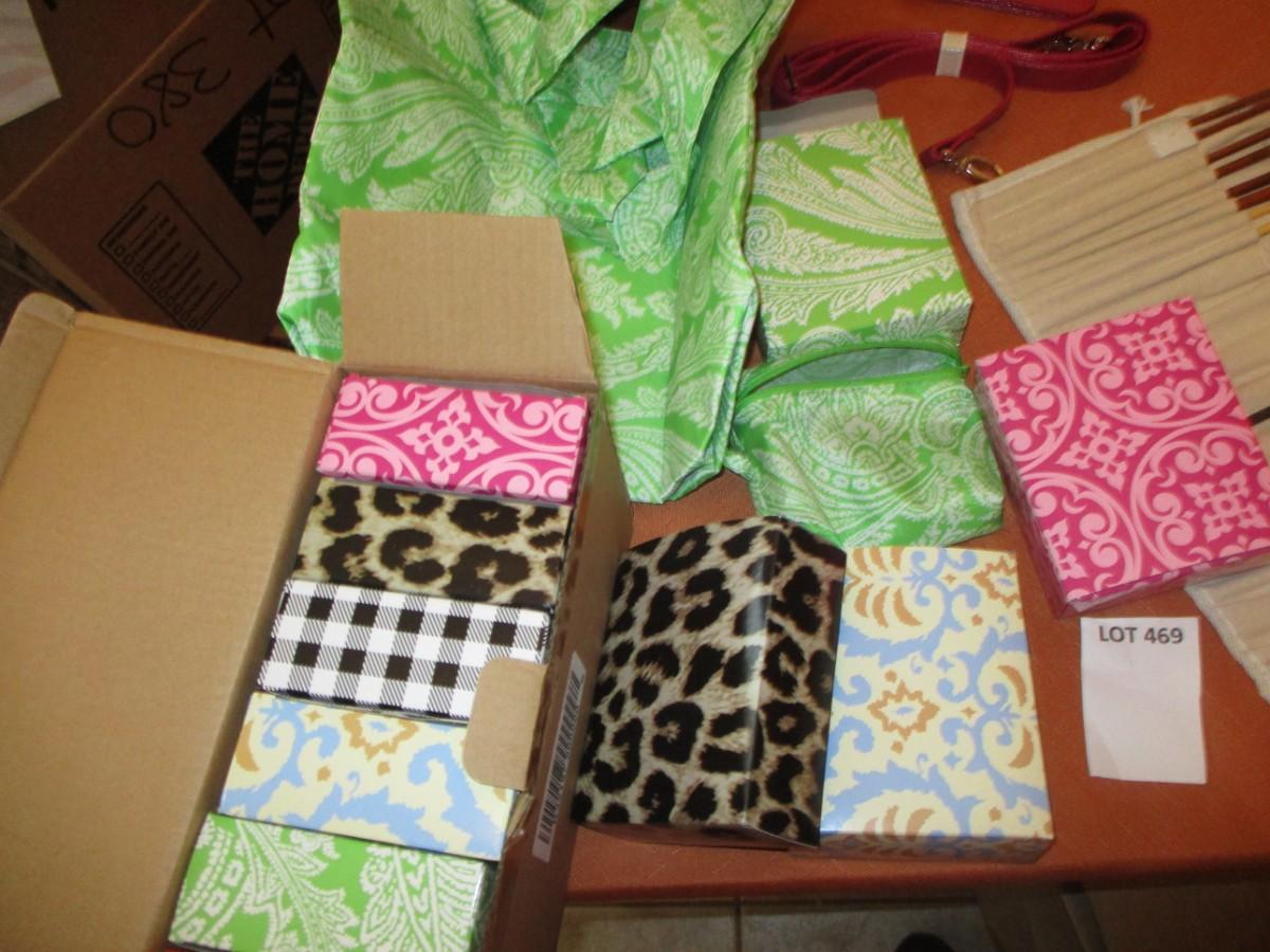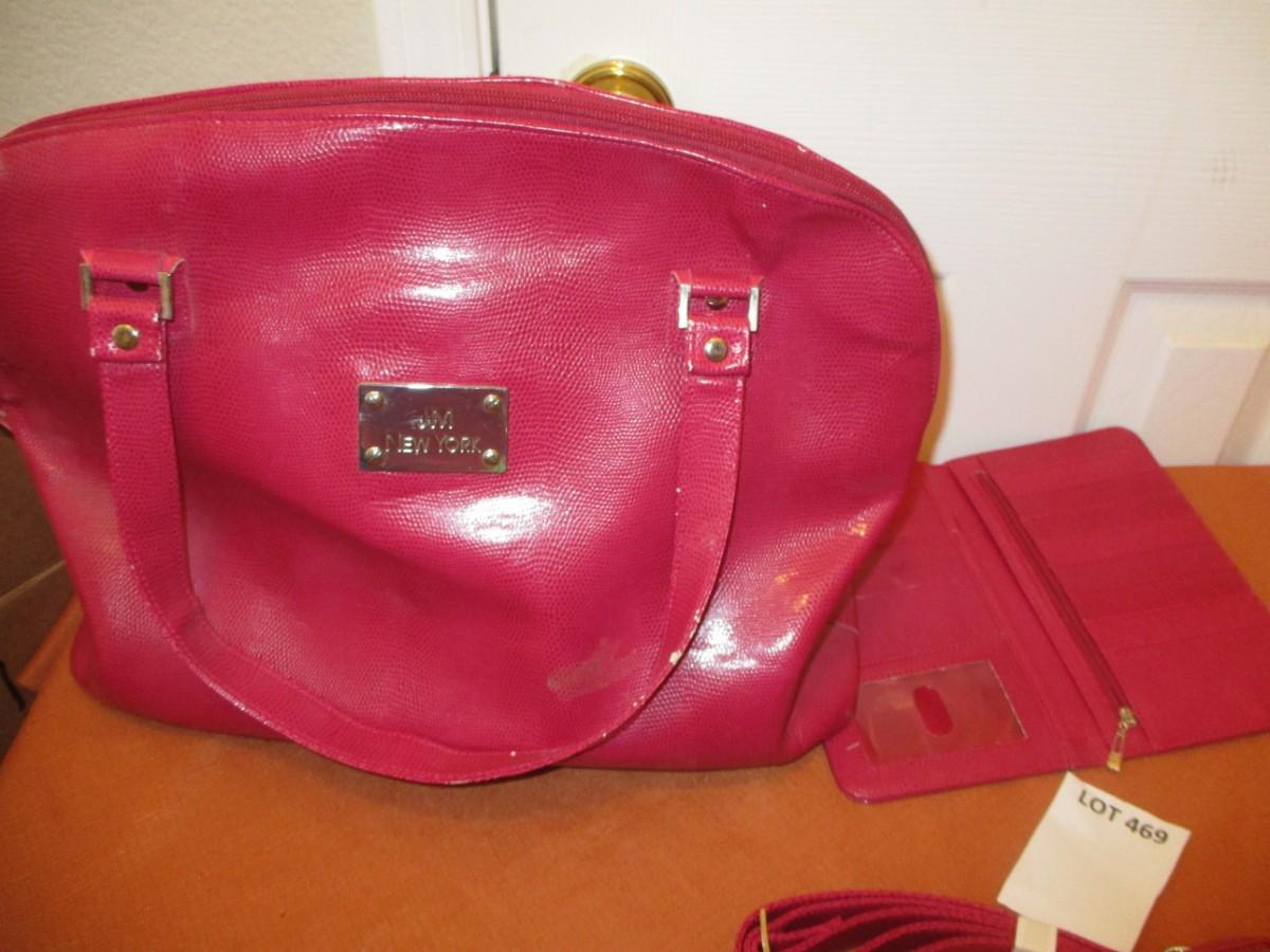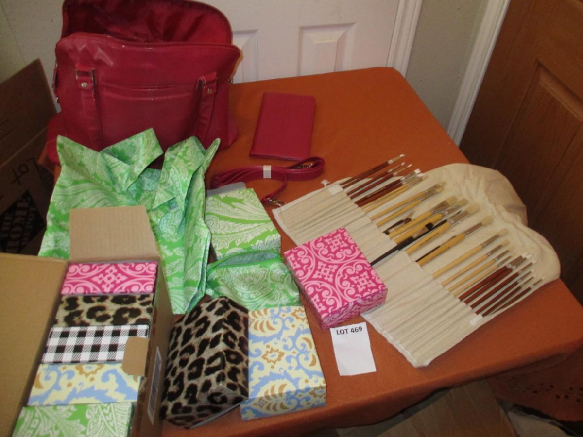 Decorative vinyl bags in a box. Pink handbag JM New Your (fair condition). Paint brushes great condition