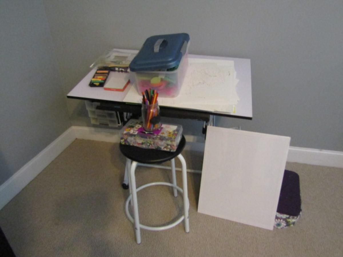 Art Desk with Stool- Assortment of Art Supplies Included- Please see all pictures.